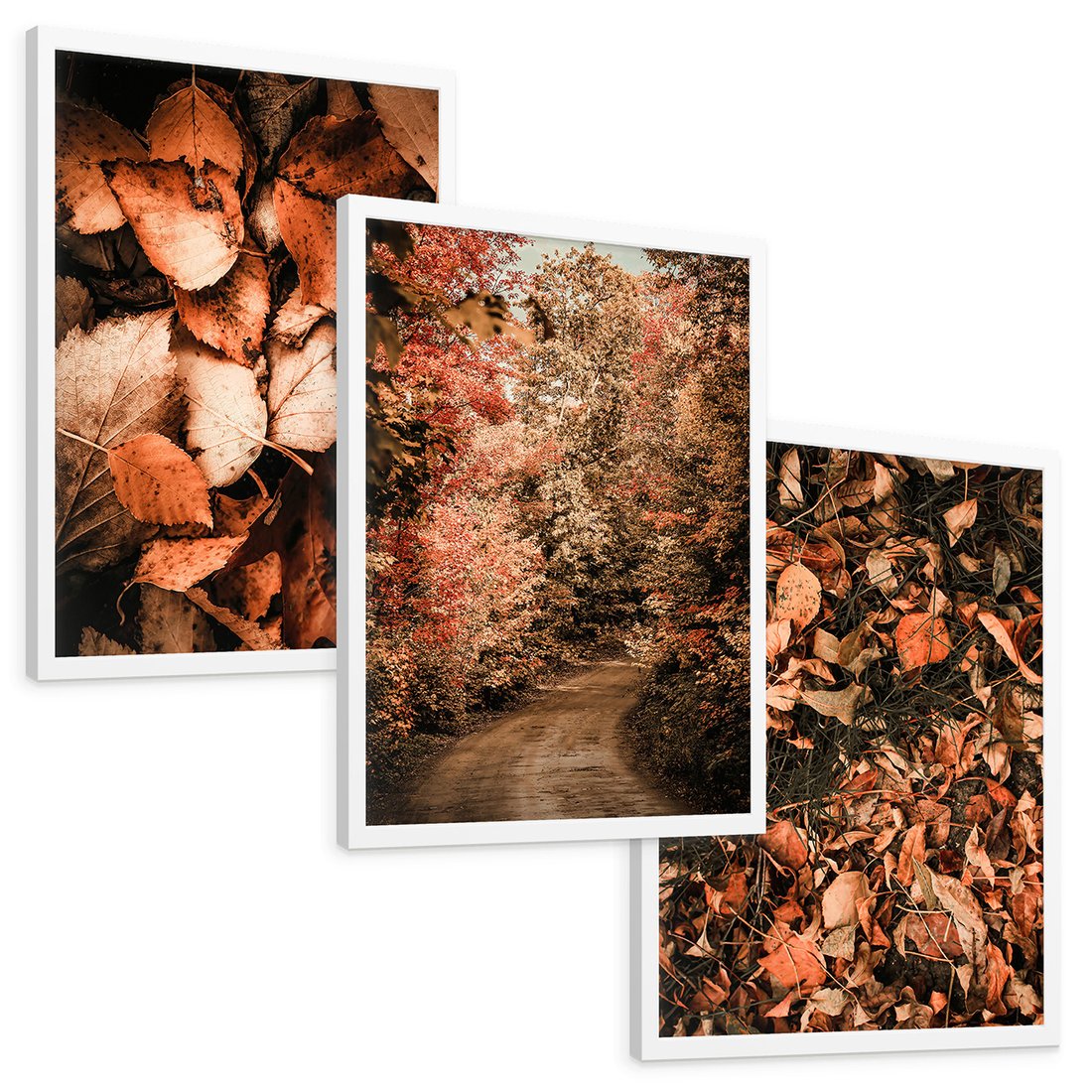 Zestaw obrazy w ramie, plakaty - liście,jesień,drzewa - rama biała