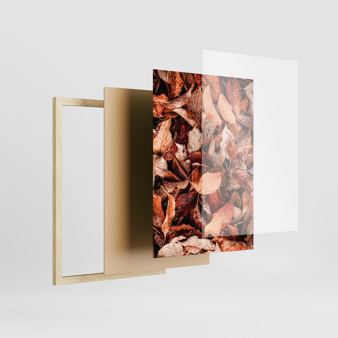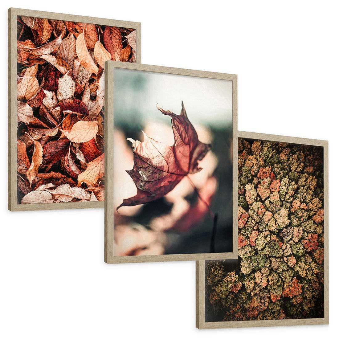 Zestaw obrazy w ramie, plakaty - liście,jesień,drzewa - rama drewno