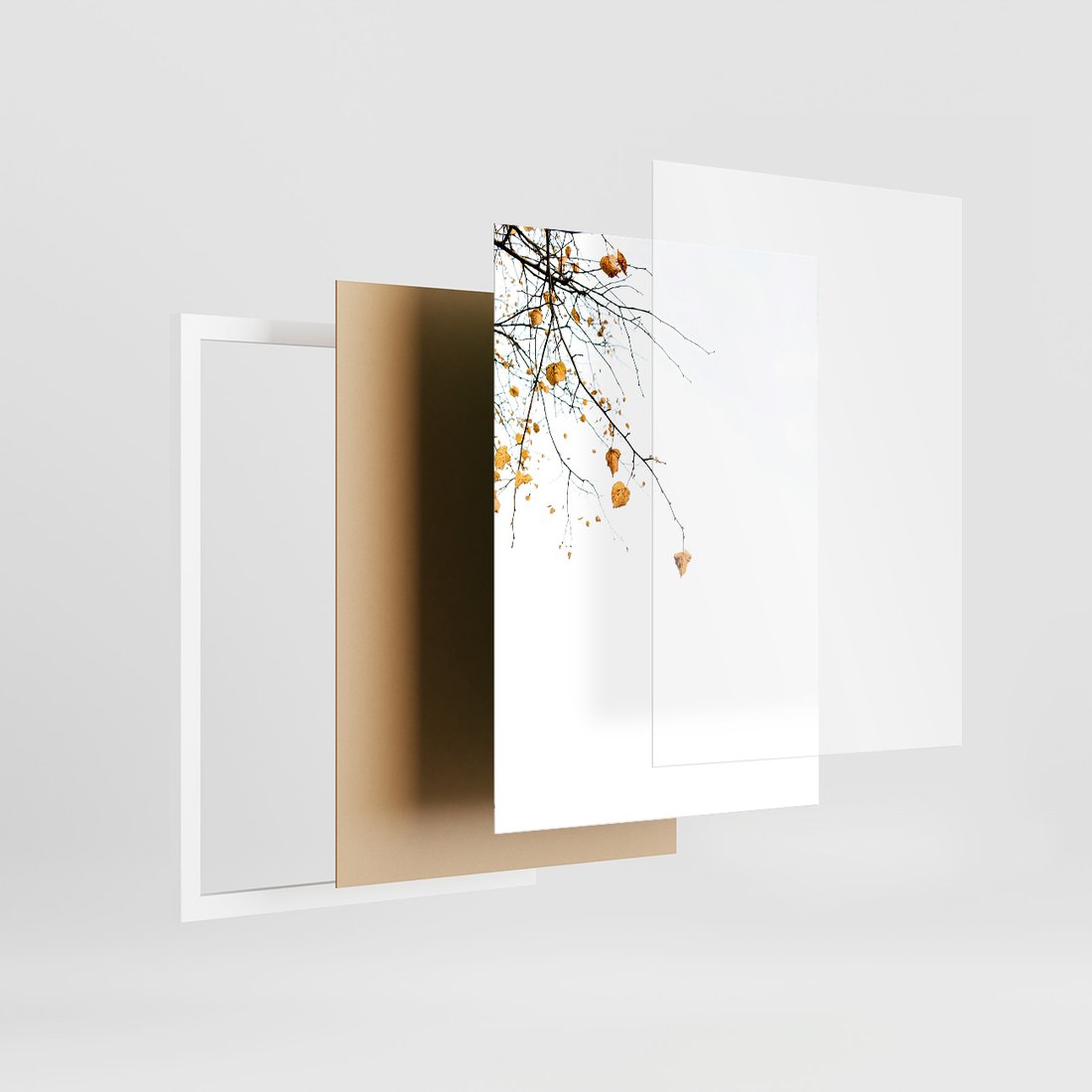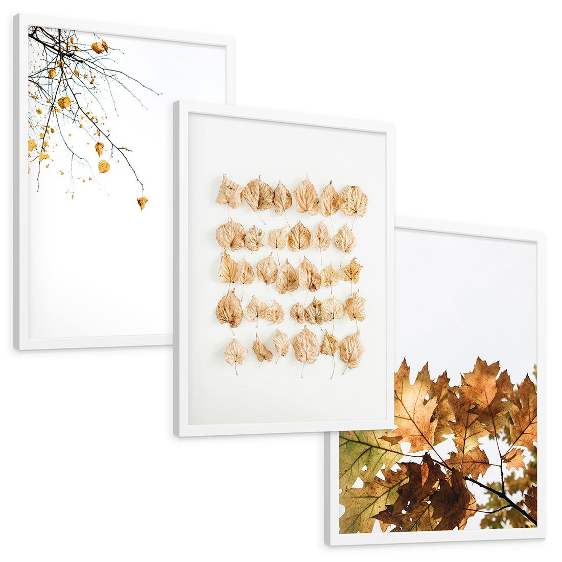 Zestaw obrazy w ramie, plakaty - liście, jesień, gałęzie - rama biała