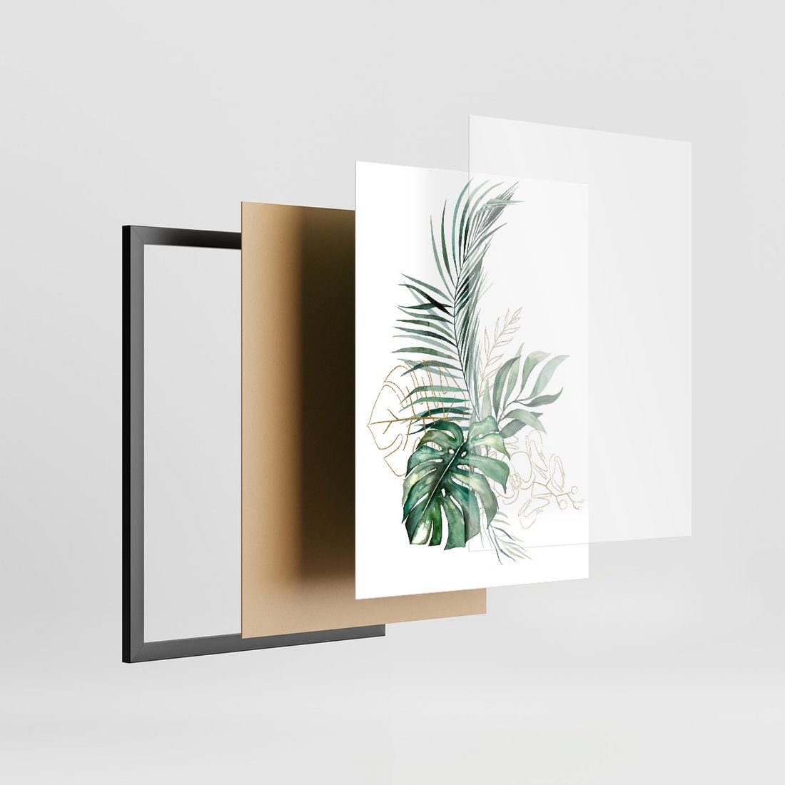 Zestaw obrazy w ramie, plakaty - liście, monstera, rośliny - rama czarna