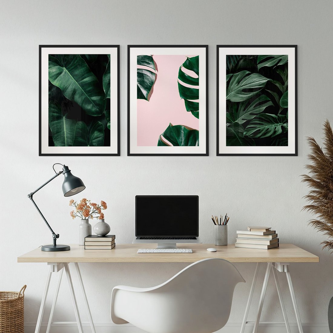 Zestaw obrazy w ramie, plakaty - liście, monstera, rośliny - rama czarna