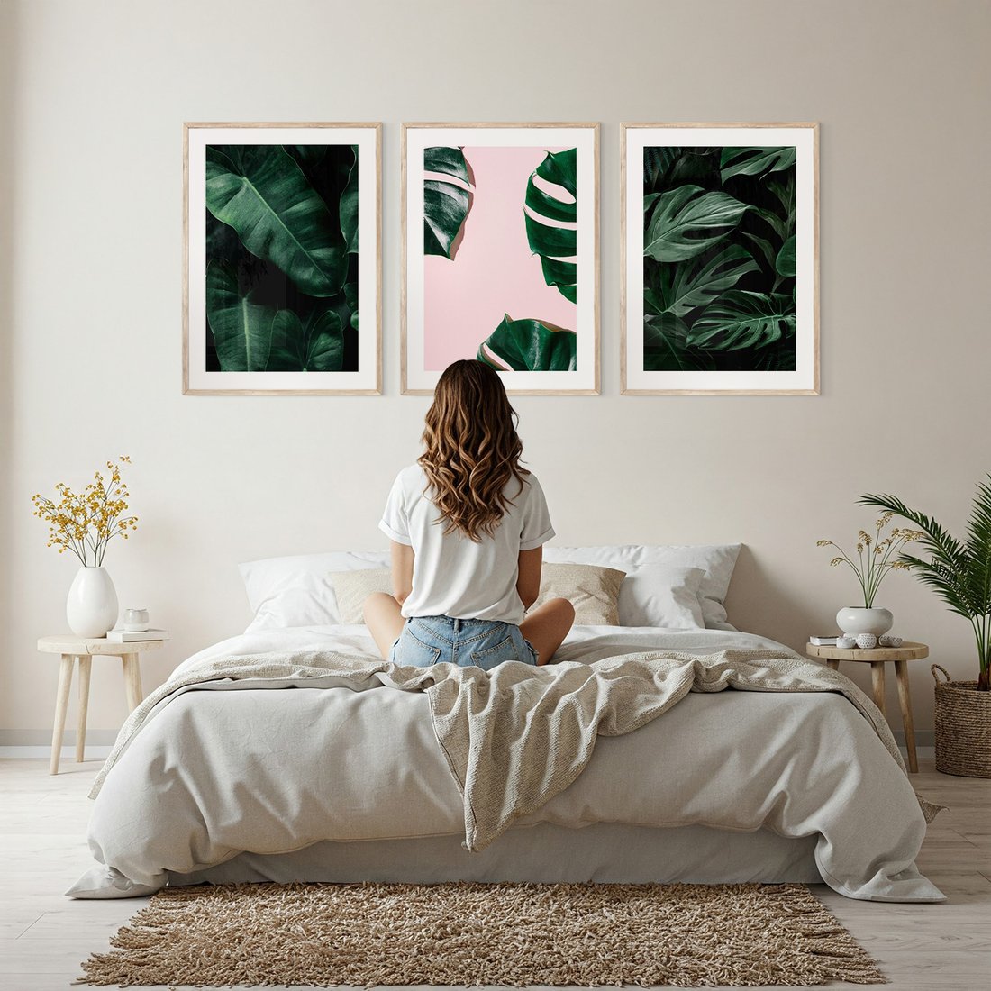 - Zestaw obrazy w ramie, plakaty - liście, monstera, rośliny
