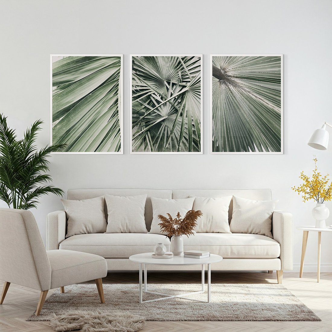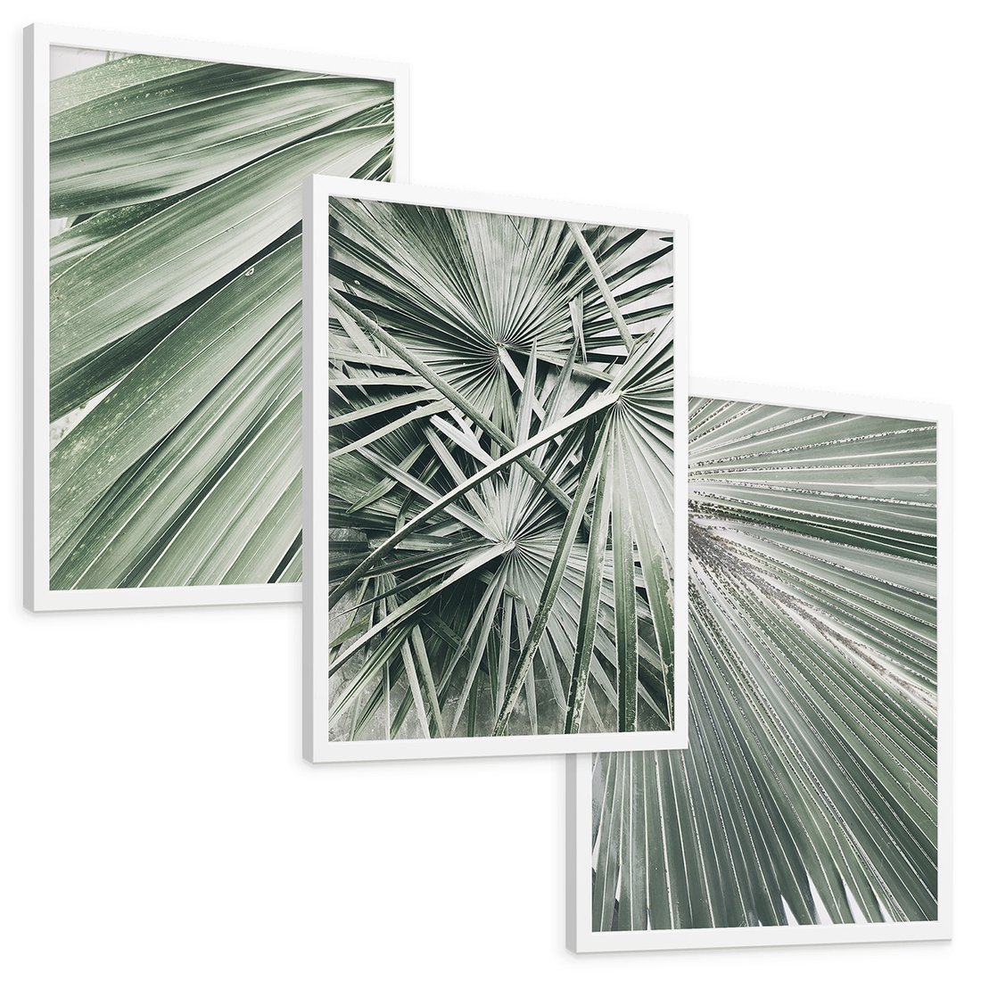 Zestaw obrazy w ramie, plakaty - liście palmowe, rośliny, natura - rama biała