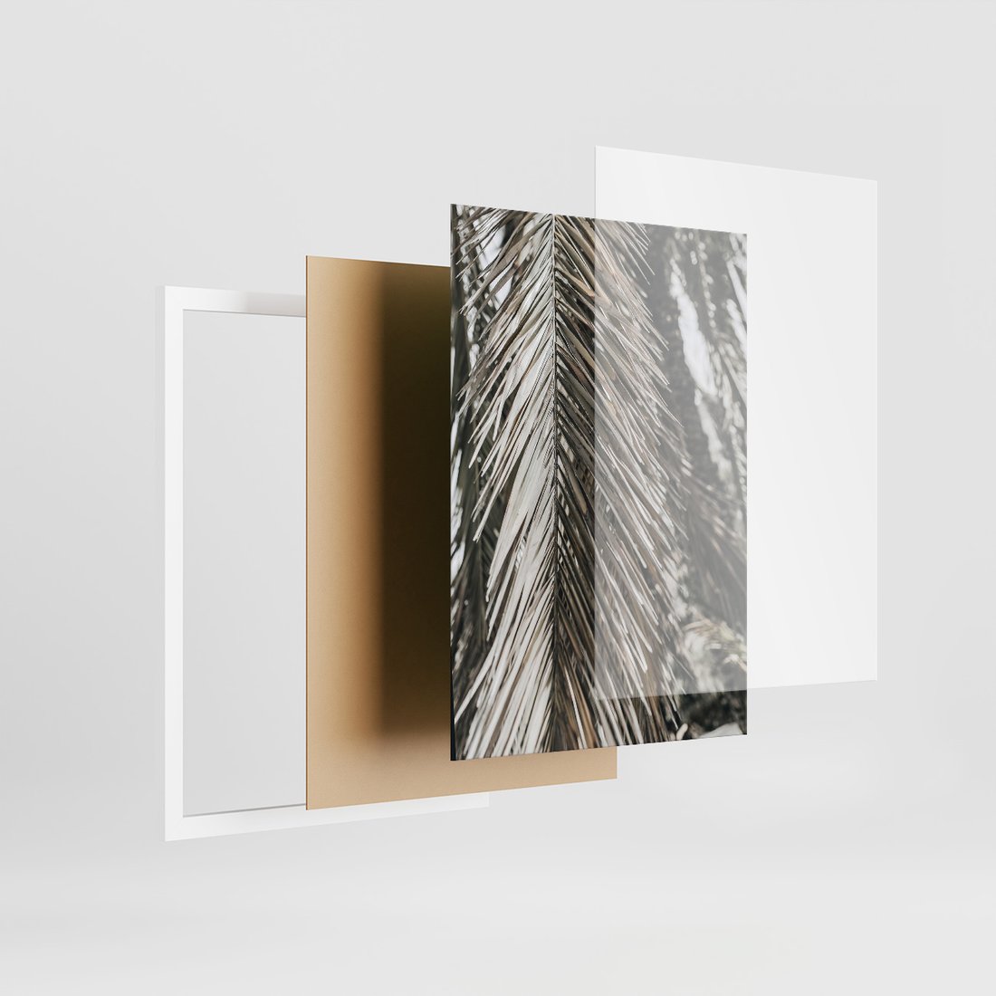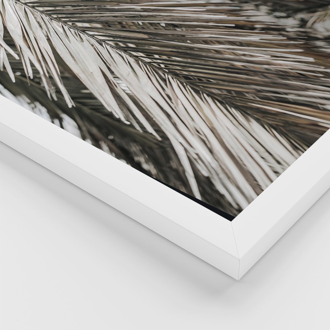 Zestaw obrazy w ramie, plakaty - liście, palmy, napisy - rama biała