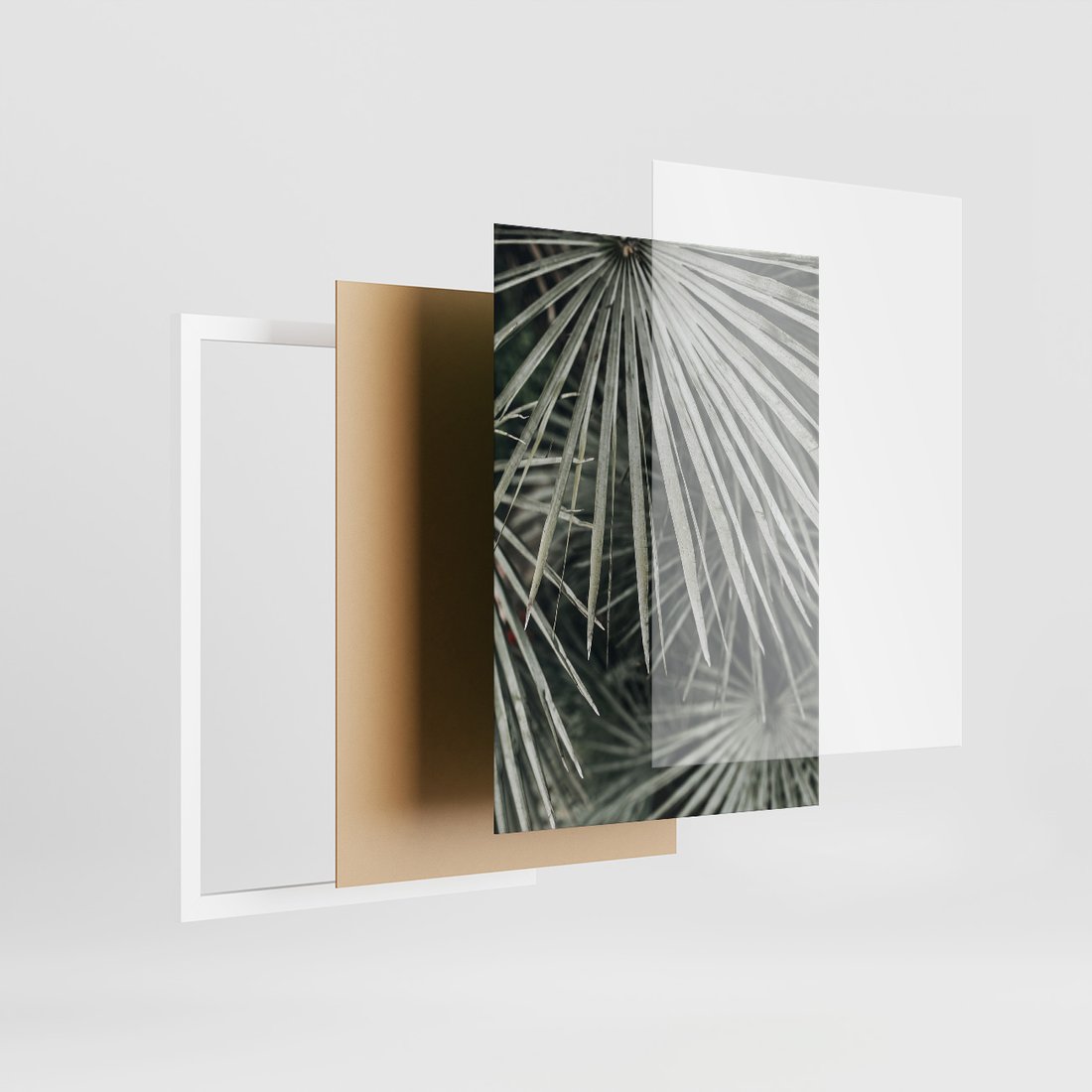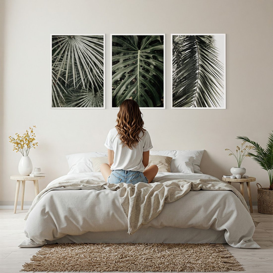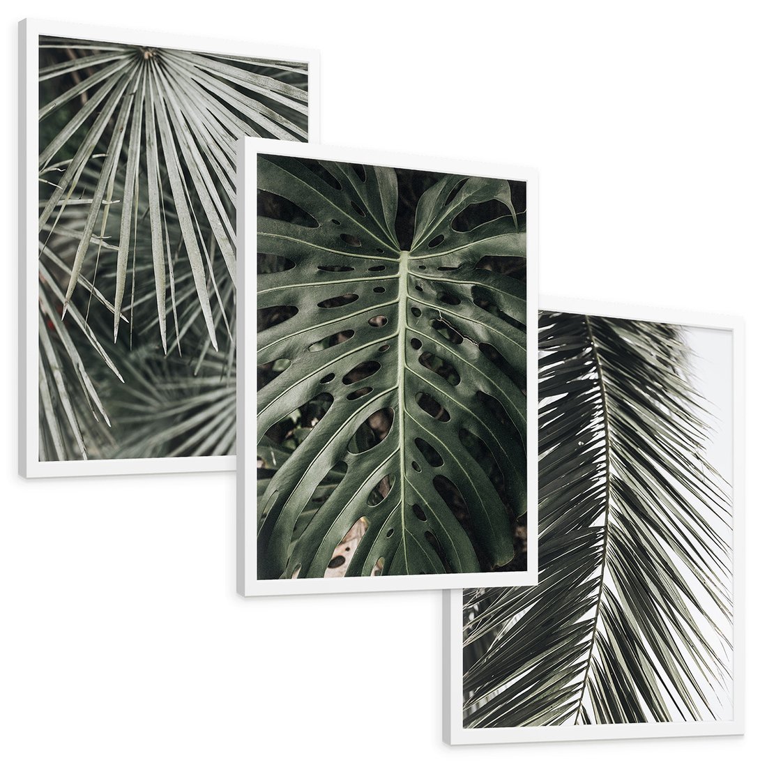 Zestaw obrazy w ramie, plakaty - liście, palmy, tropikalne - rama biała