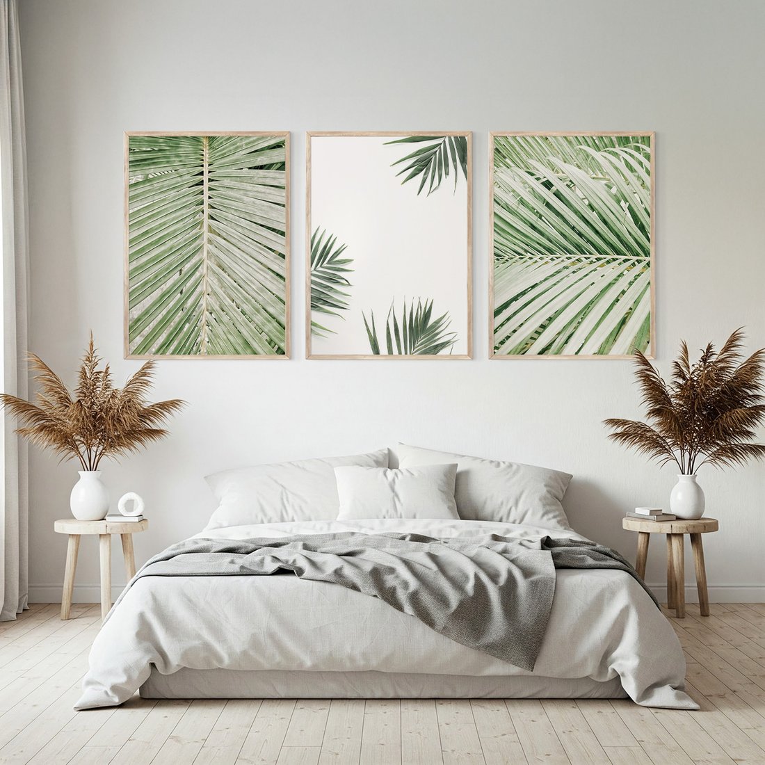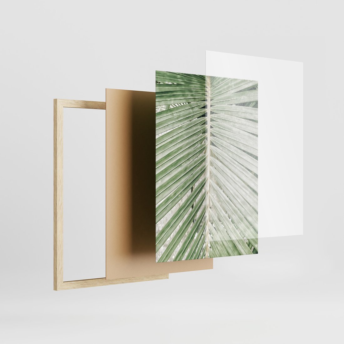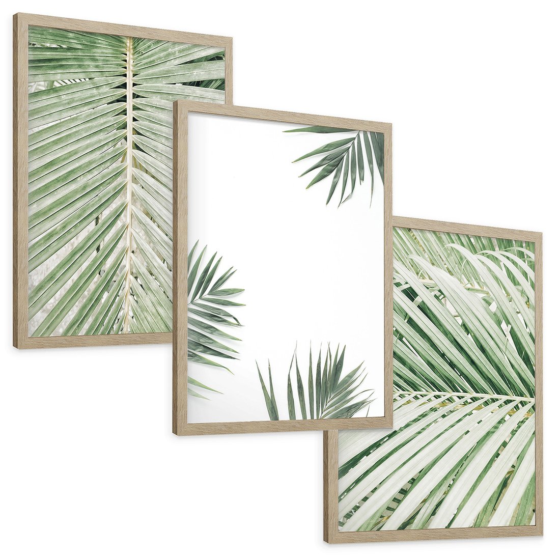 Zestaw obrazy w ramie, plakaty - liście, palmy, tropikalne - rama drewno