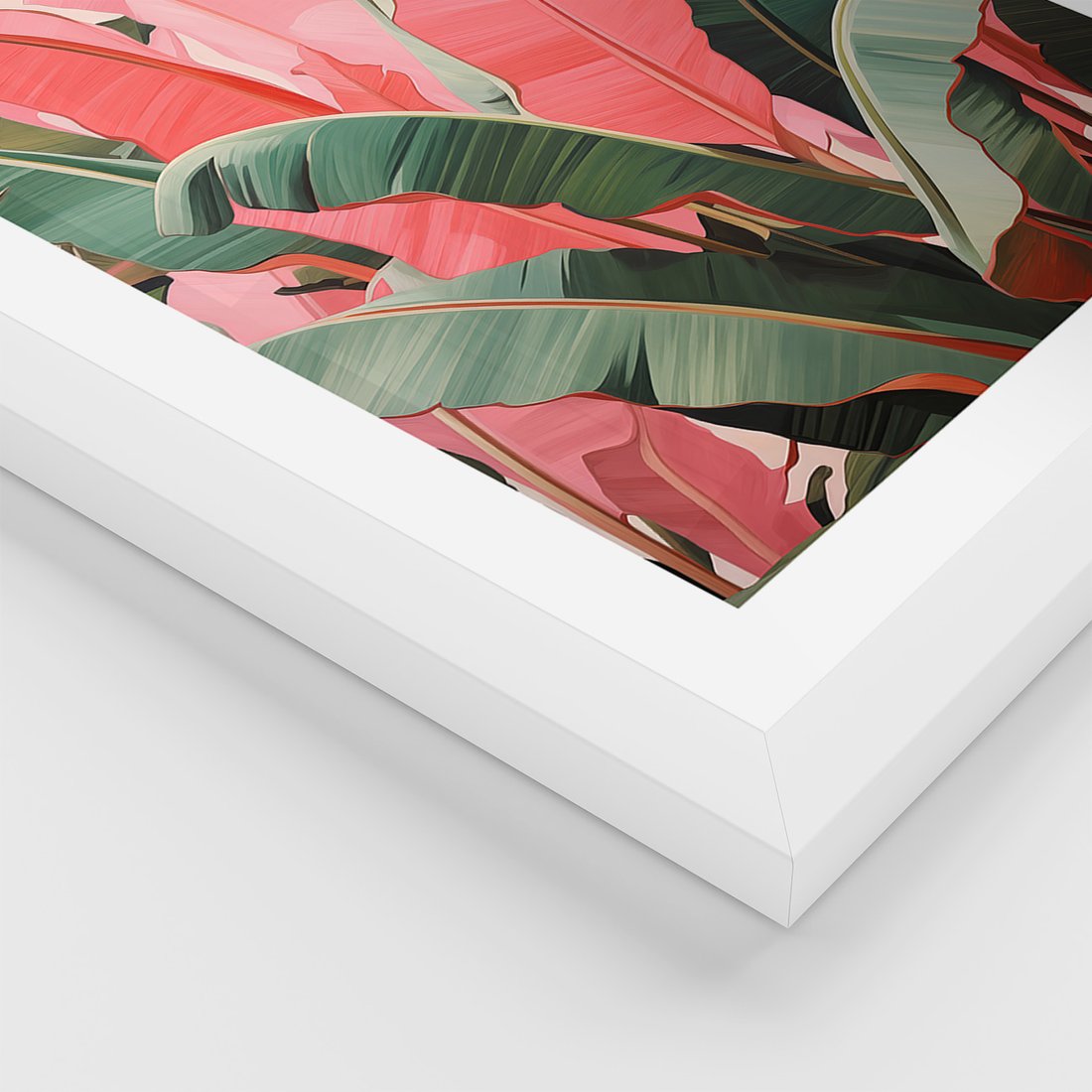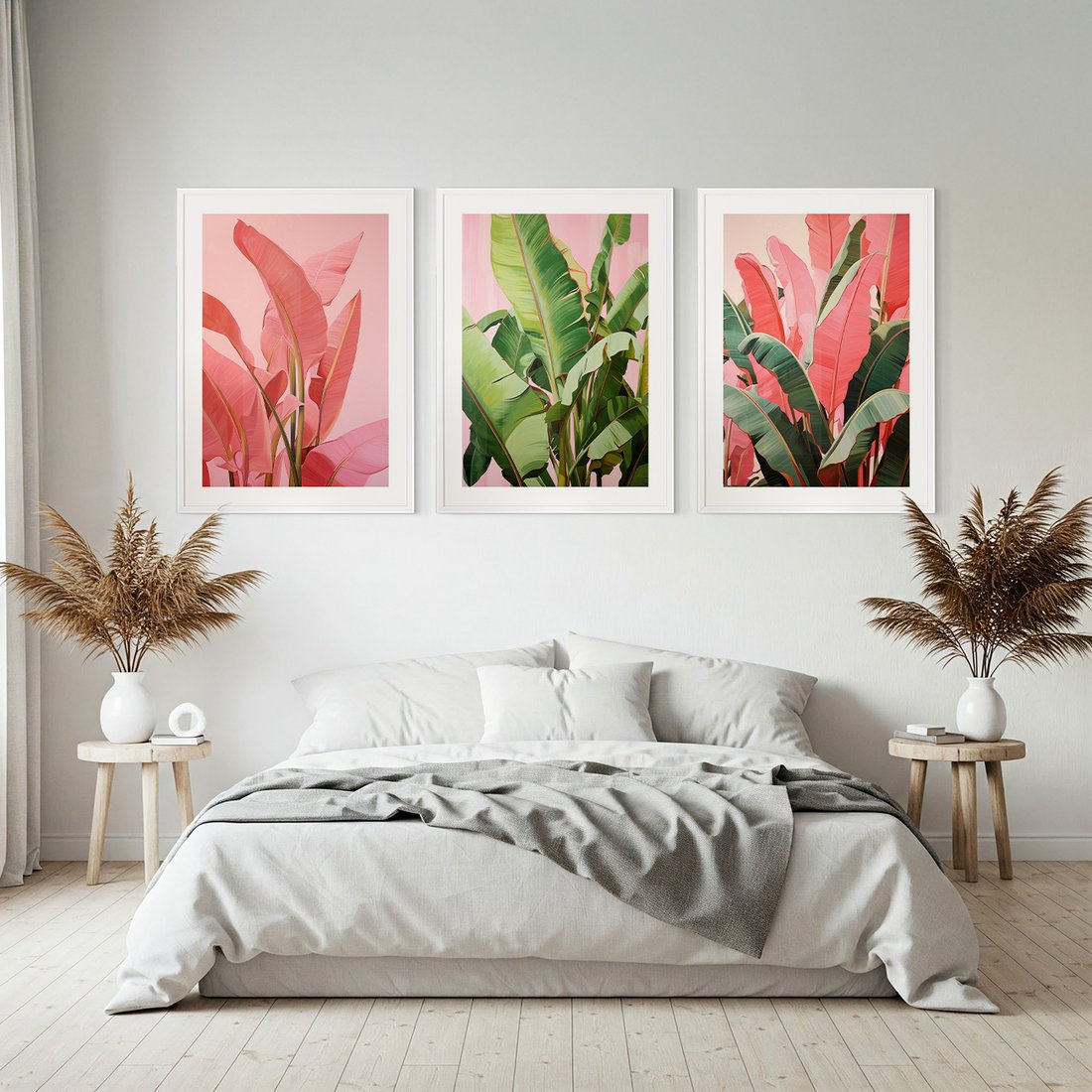 Zestaw obrazy w ramie, plakaty - liście, pastelowy, tropikalny - rama biała
