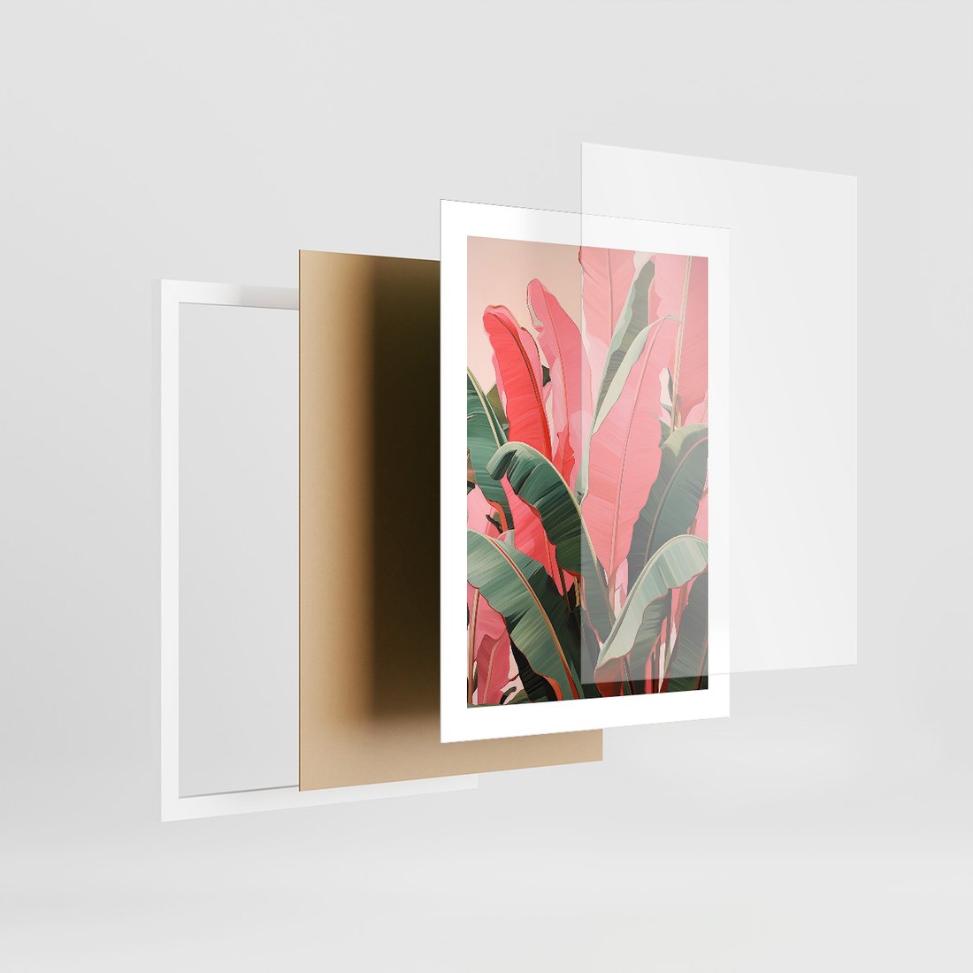 - Zestaw obrazy w ramie, plakaty - liście, pastelowy, tropikalny