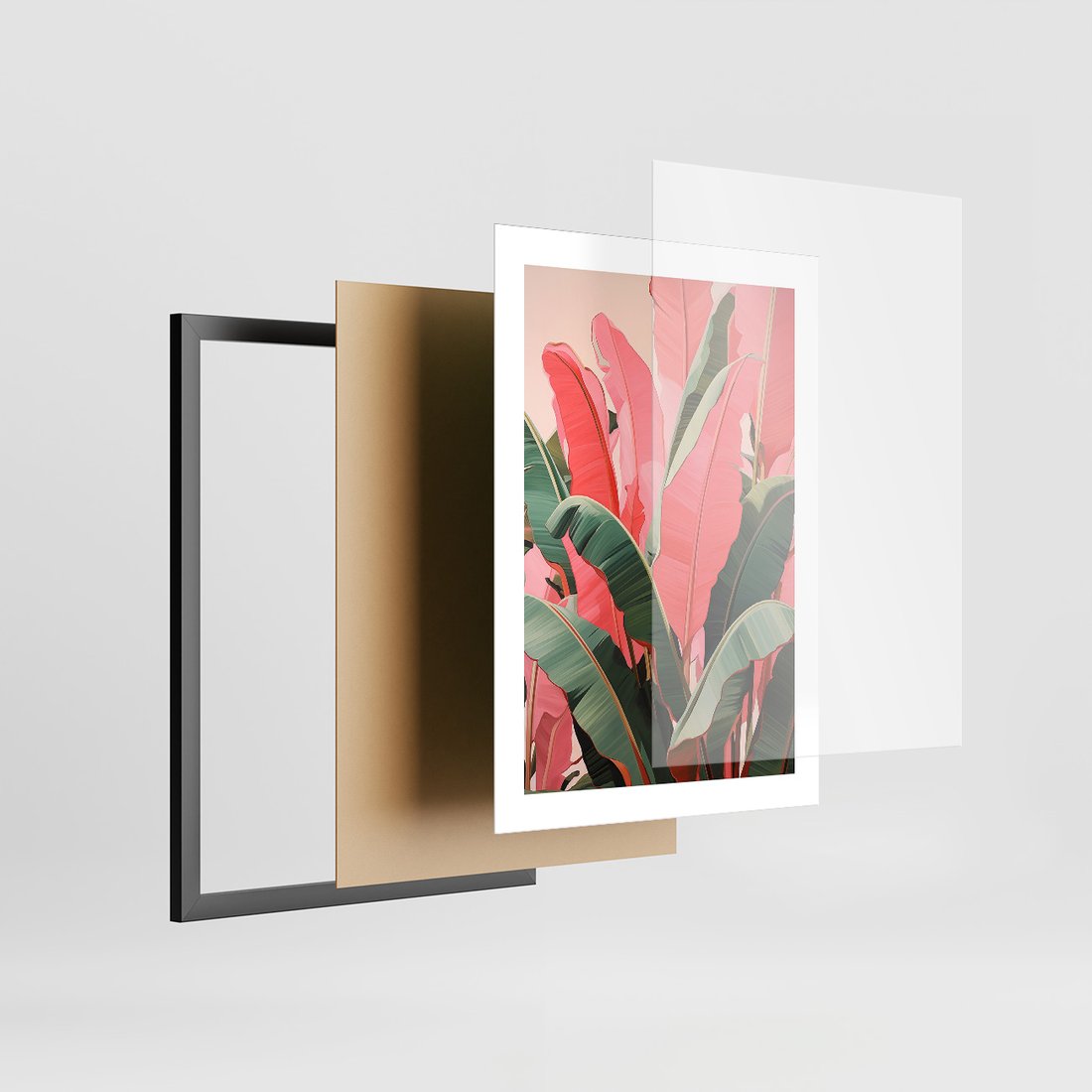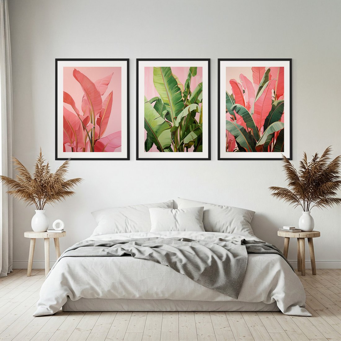 - Zestaw obrazy w ramie, plakaty - liście, pastelowy, tropikalny
