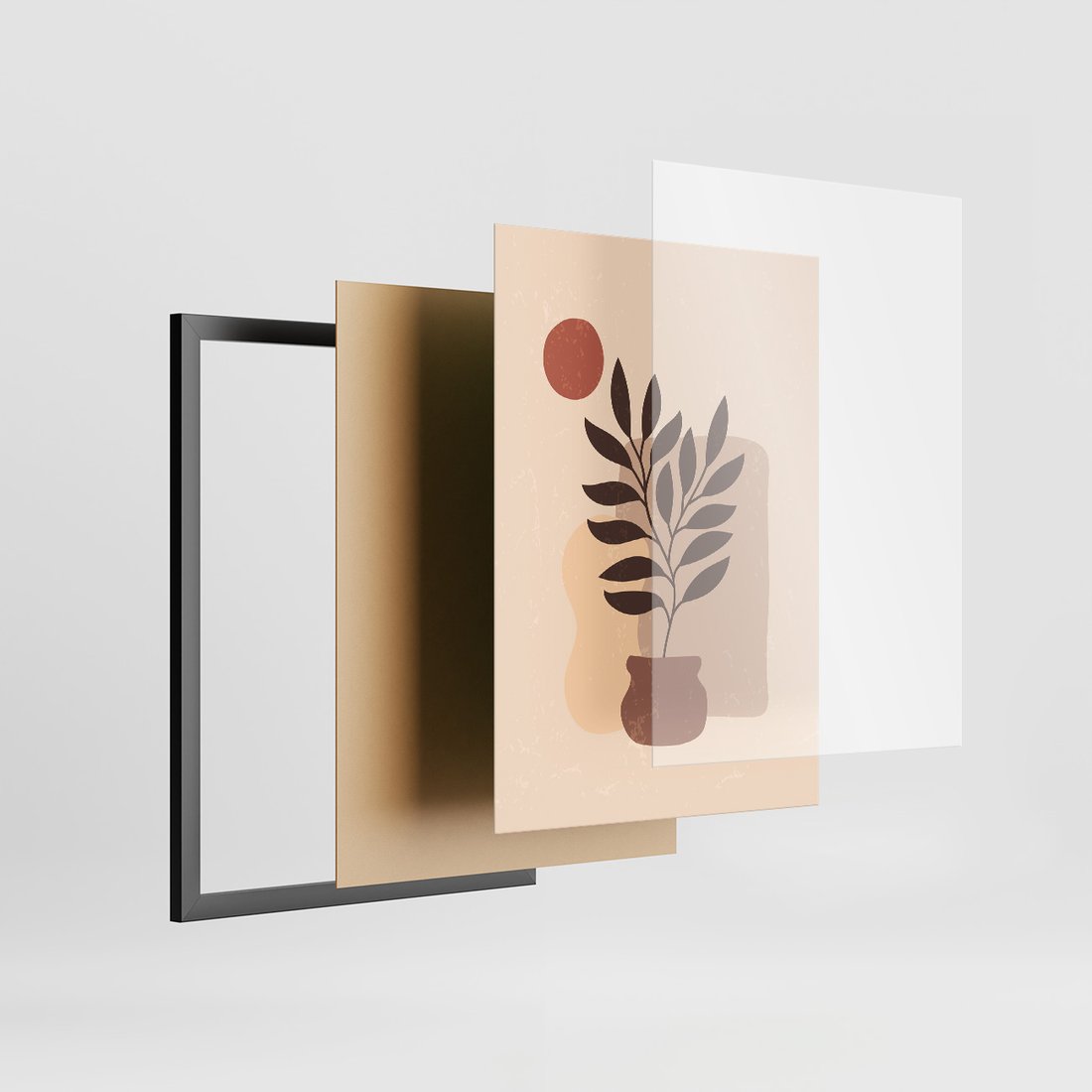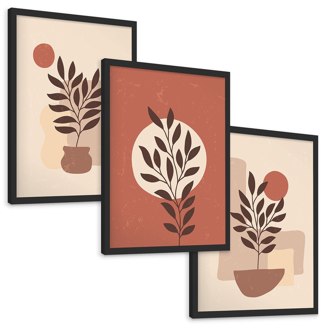 Zestaw obrazy w ramie, plakaty - liście, roślina, abstrakcja - rama czarna