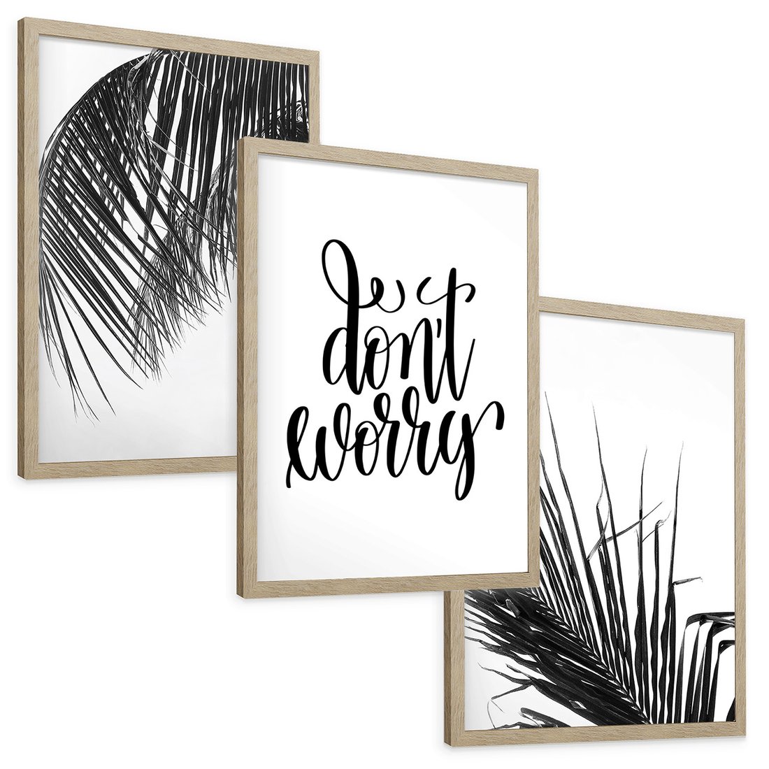 Zestaw obrazy w ramie, plakaty - liście,roślina,czarny - rama drewno