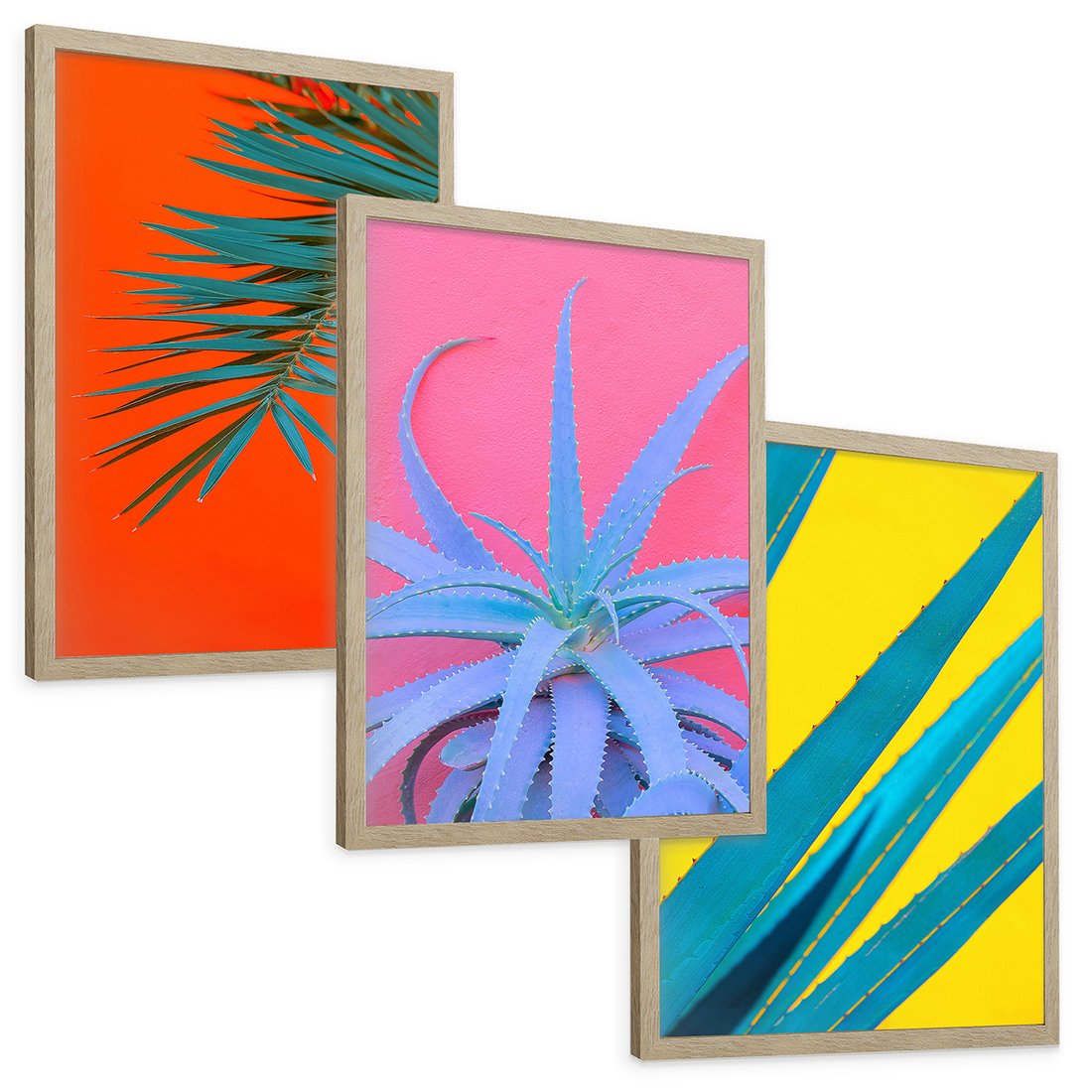Zestaw obrazy w ramie, plakaty - liście,roślina,tropikalny - rama drewno
