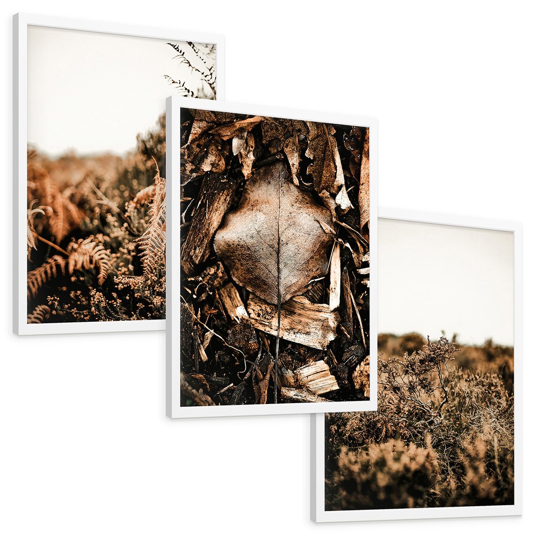 - Zestaw obrazy w ramie, plakaty - liście, roślinność, brązowy