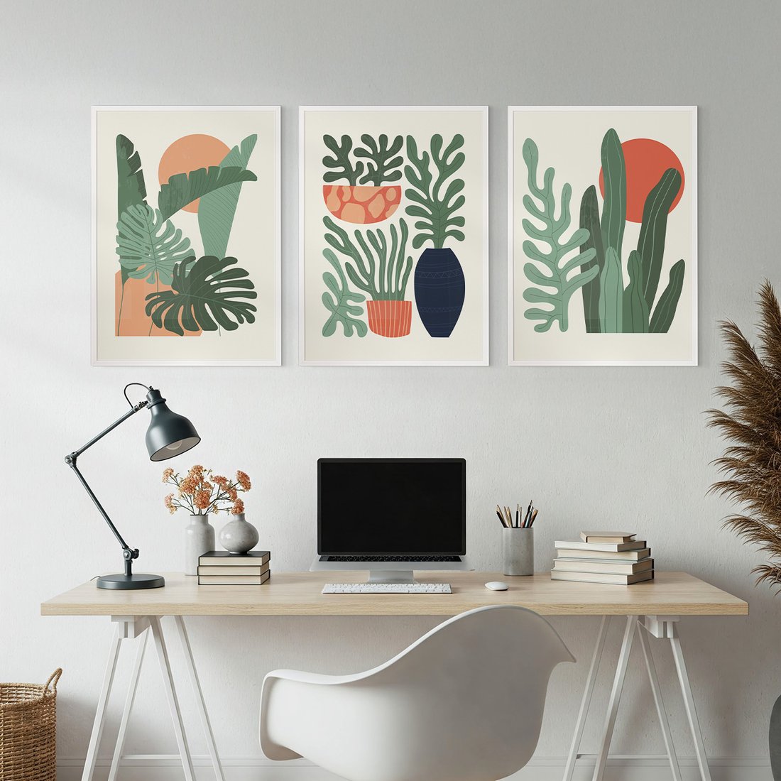 - Zestaw obrazy w ramie, plakaty - liście, rośliny, abstrakcja