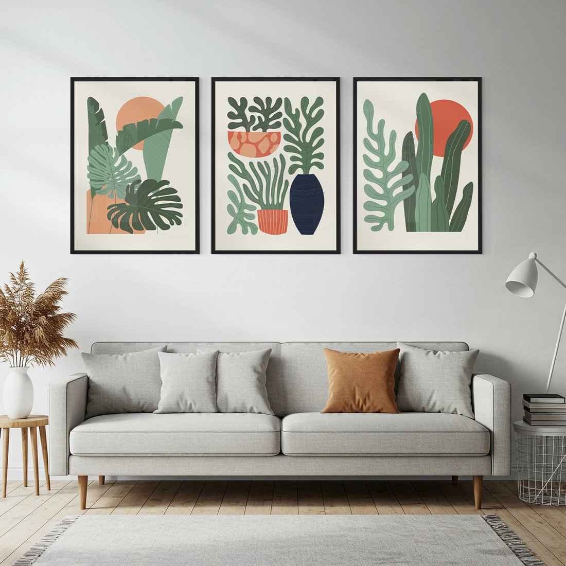 • Zestaw obrazy w ramie, plakaty - liście, rośliny, abstrakcja