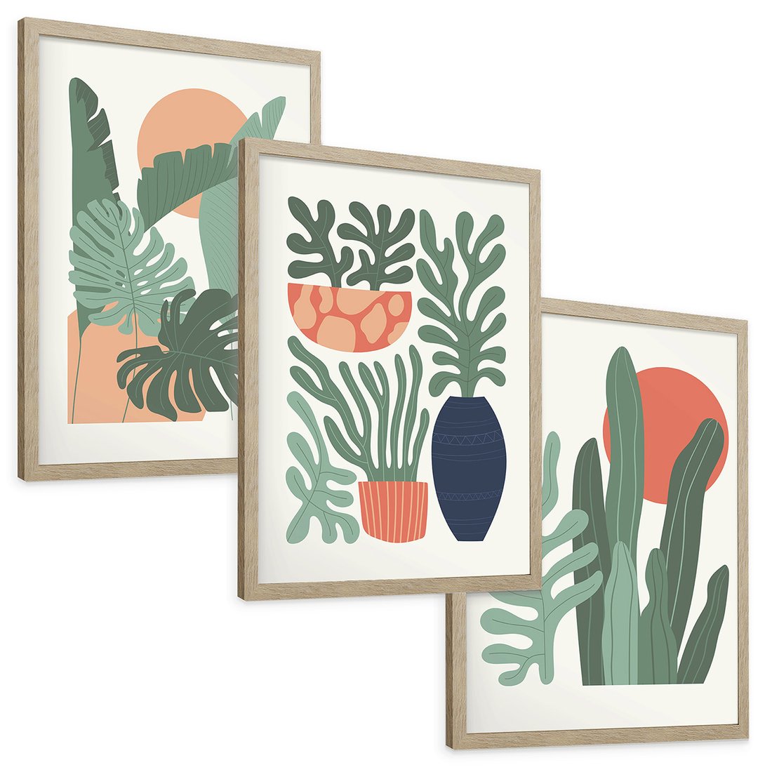 Zestaw obrazy w ramie, plakaty - liście, rośliny, abstrakcja - rama drewno