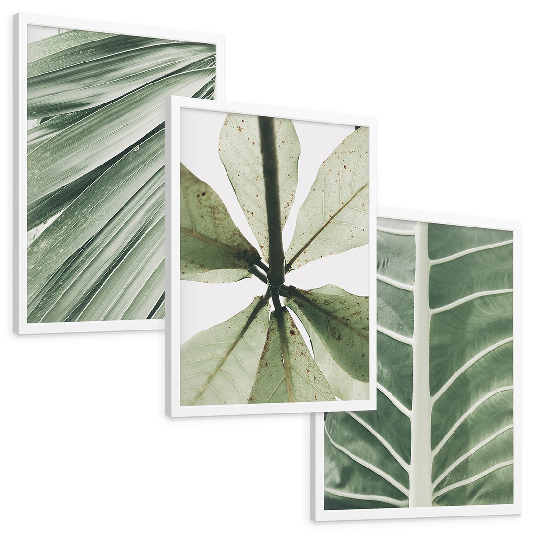 Zestaw obrazy w ramie, plakaty - liście, tropikalne, zielone - rama biała