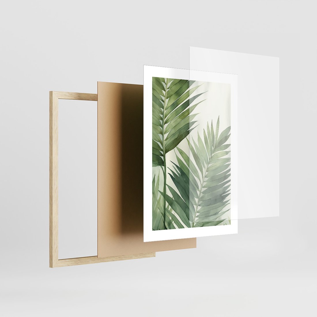 Zestaw obrazy w ramie, plakaty - liście, tropikalny, rośliny - rama drewno