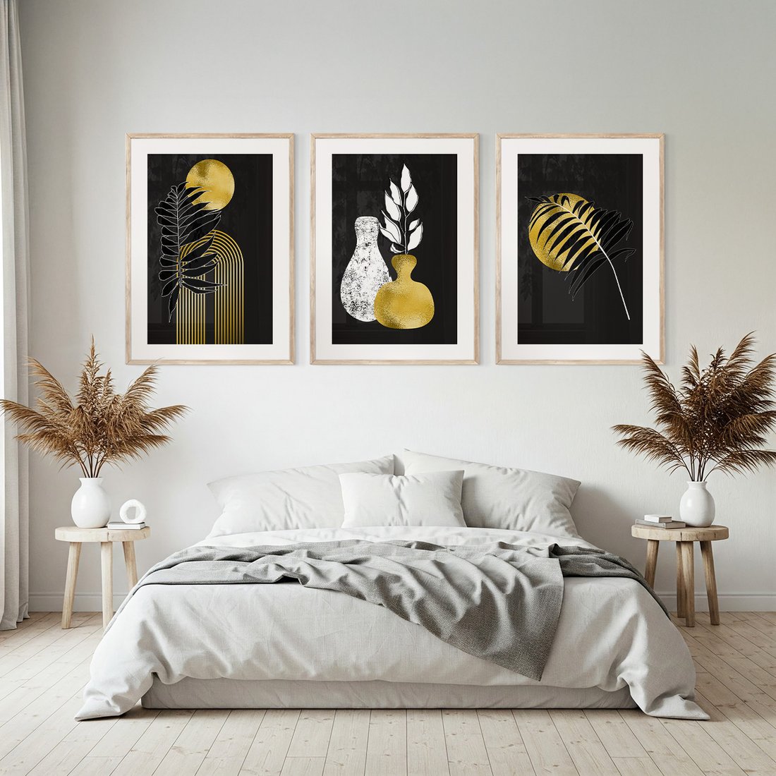 • Zestaw obrazy w ramie, plakaty - liście, złoto, abstrakcja
