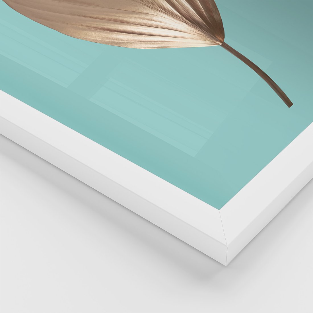 Zestaw obrazy w ramie, plakaty - liście, złoto, roślina - rama biała