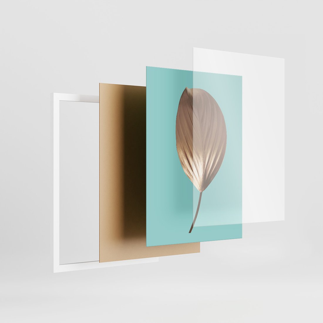 • Zestaw obrazy w ramie, plakaty - liście, złoto, roślina
