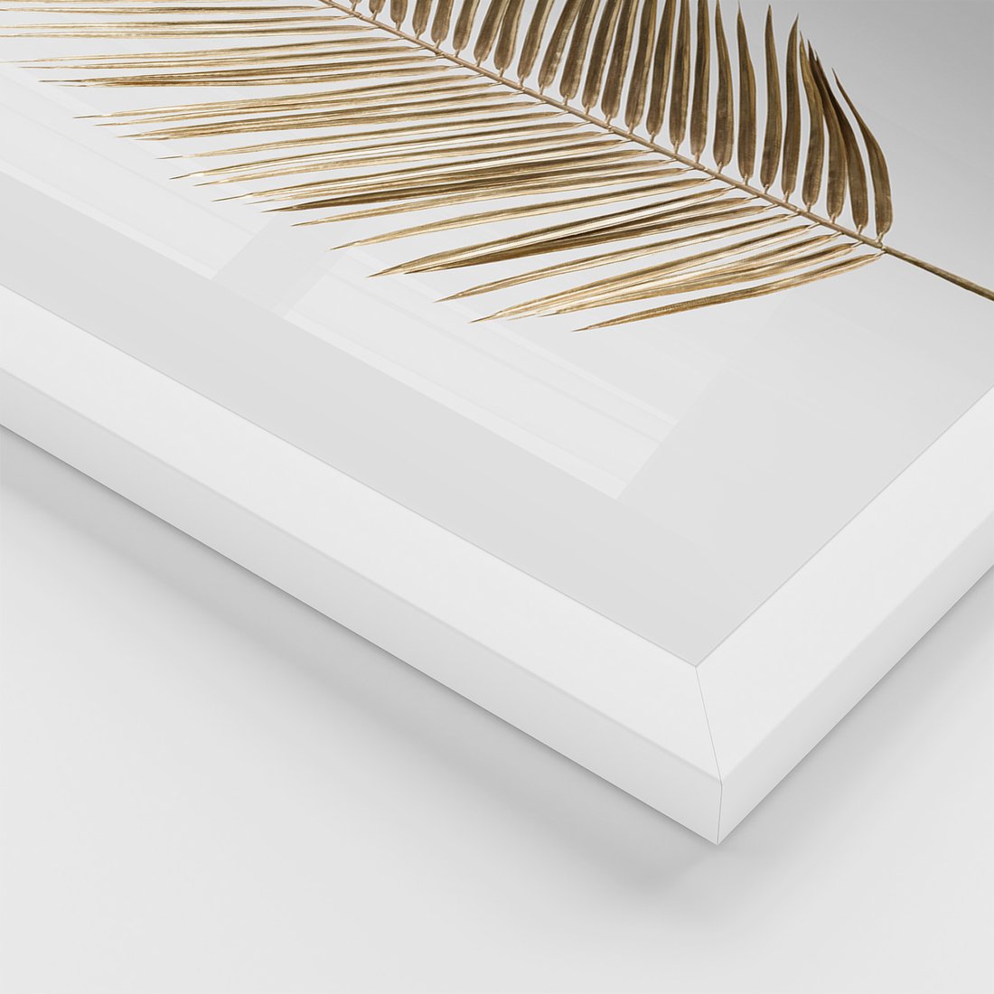 Zestaw obrazy w ramie, plakaty - liście, złoty, dekoracja - rama biała