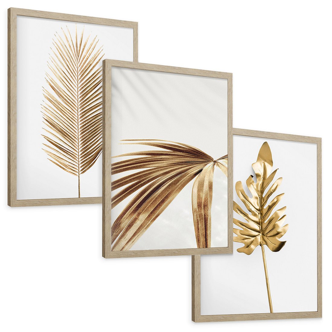 - Zestaw obrazy w ramie, plakaty - liście, złoty, dekoracja