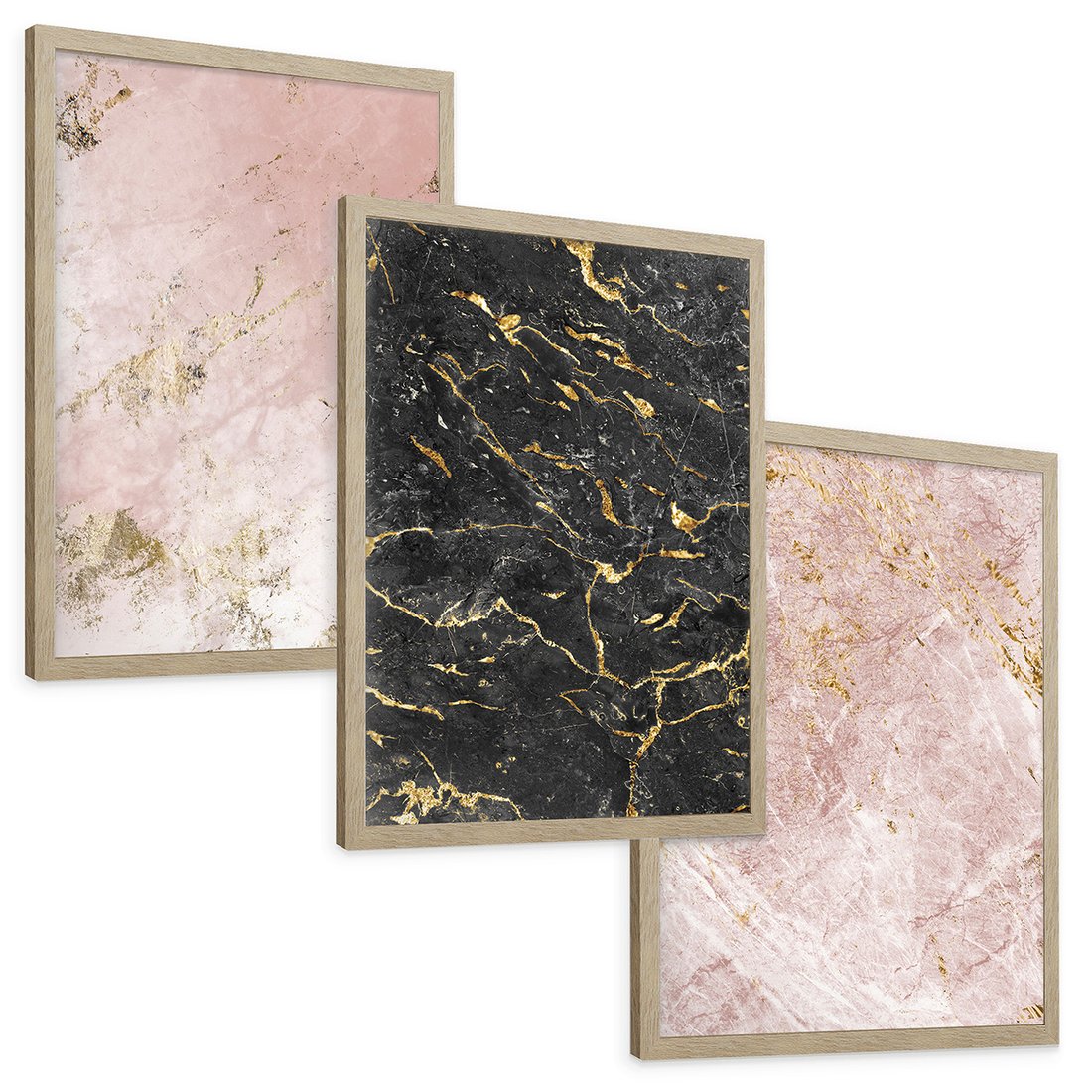 - Zestaw obrazy w ramie, plakaty - marmur, tekstura, złoto