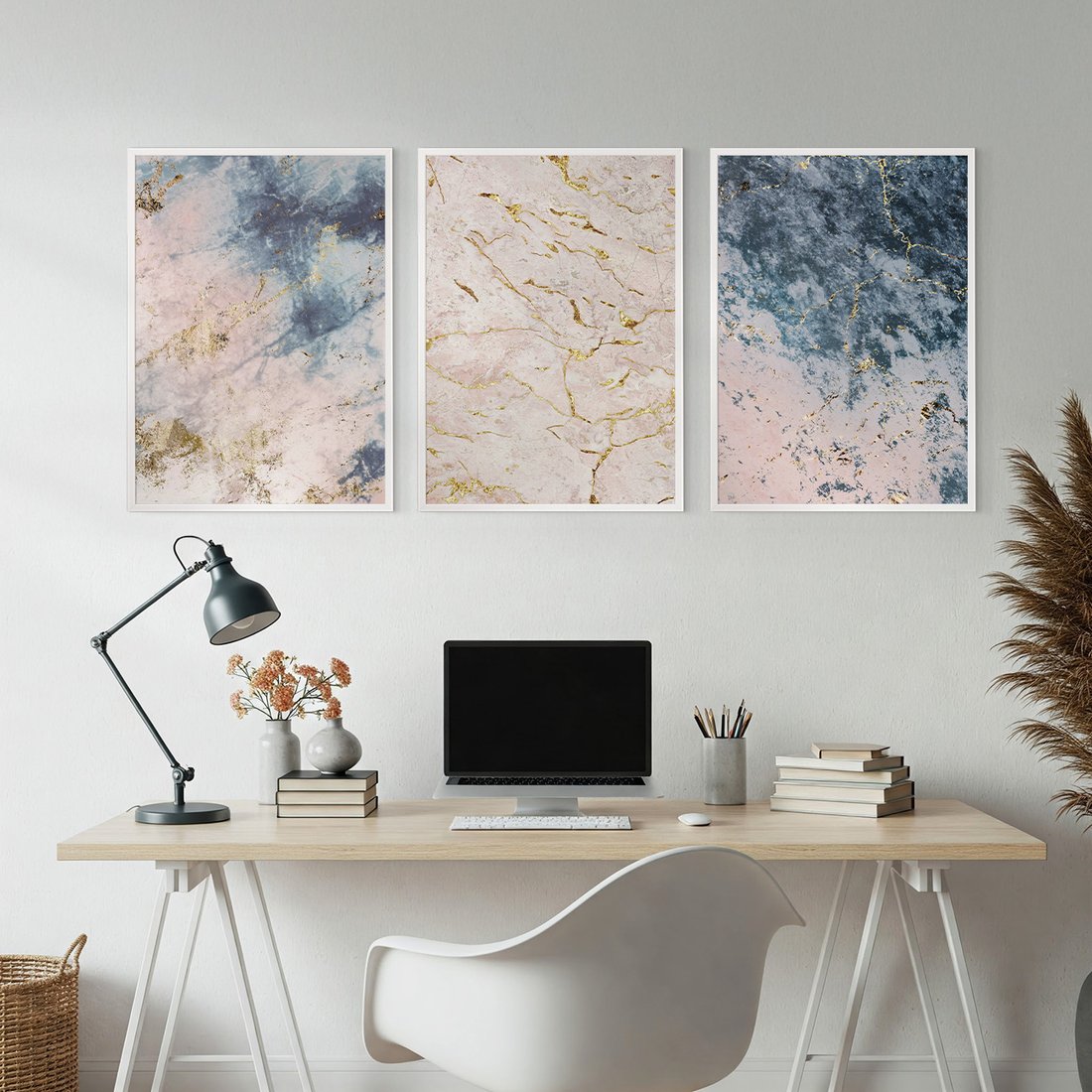 • Zestaw obrazy w ramie, plakaty - marmur, złoto, abstrakcja