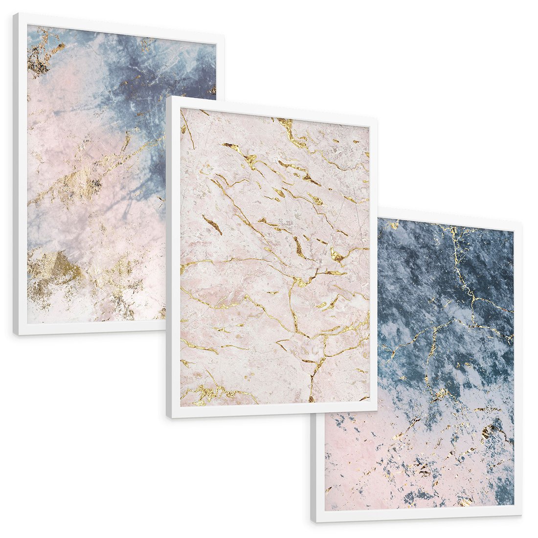 Zestaw obrazy w ramie, plakaty - marmur, złoto, abstrakcja - rama biała