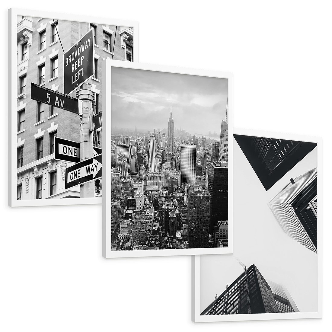 Zestaw obrazy w ramie, plakaty - miasto, architektura, budynki - rama biała
