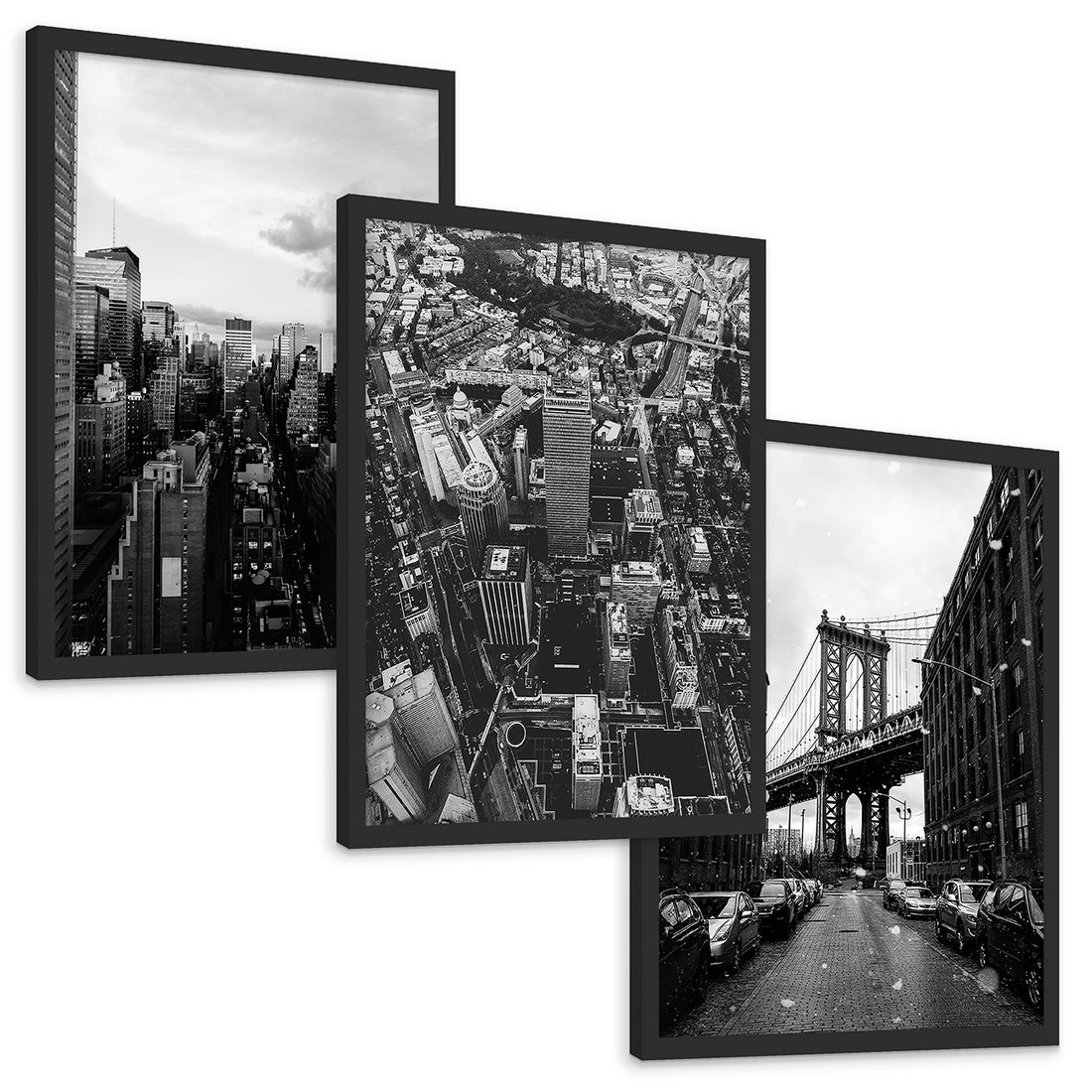 Zestaw obrazy w ramie, plakaty - miasto, budynki, most - rama czarna