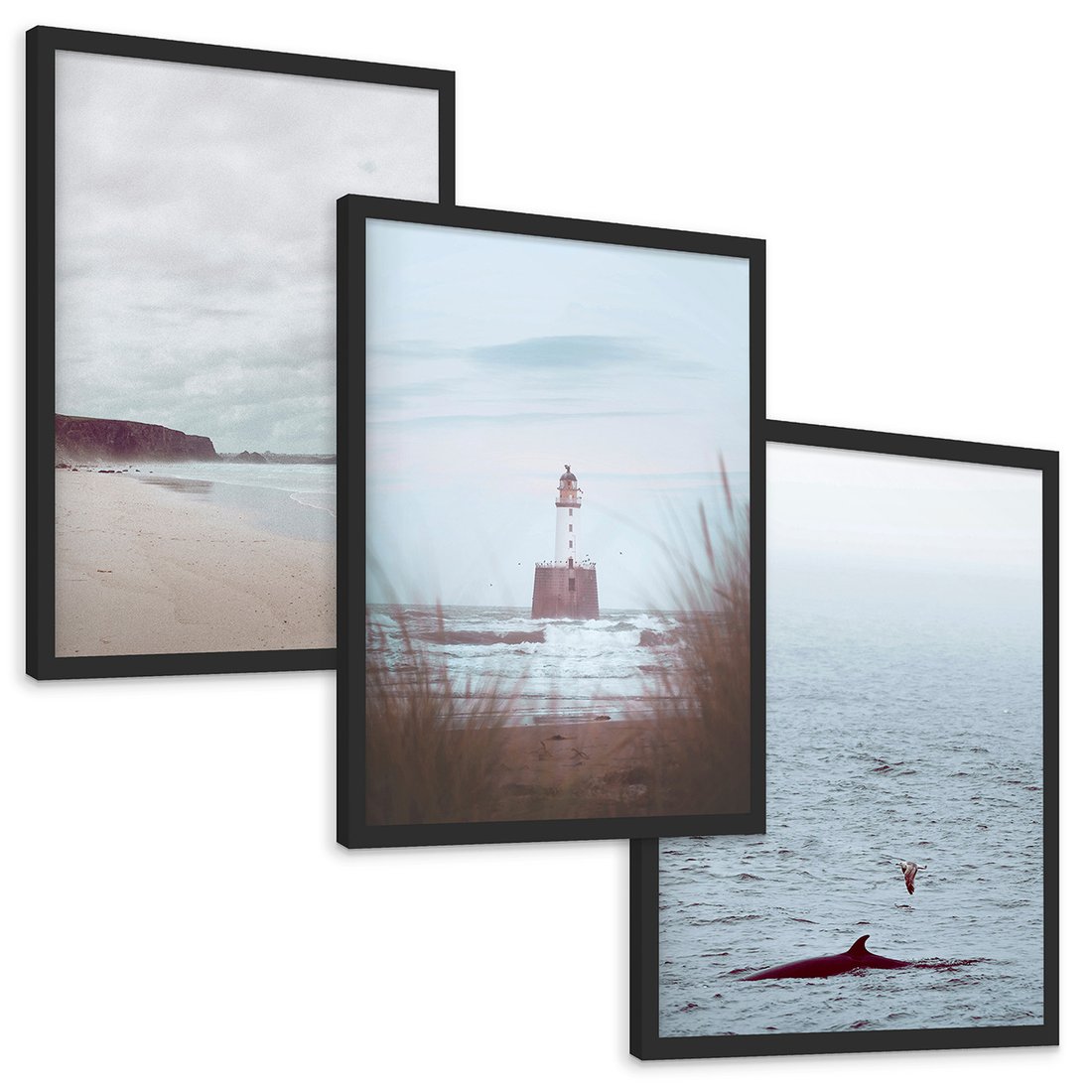 Zestaw obrazy w ramie, plakaty - morze, plaża, krajobraz - rama czarna