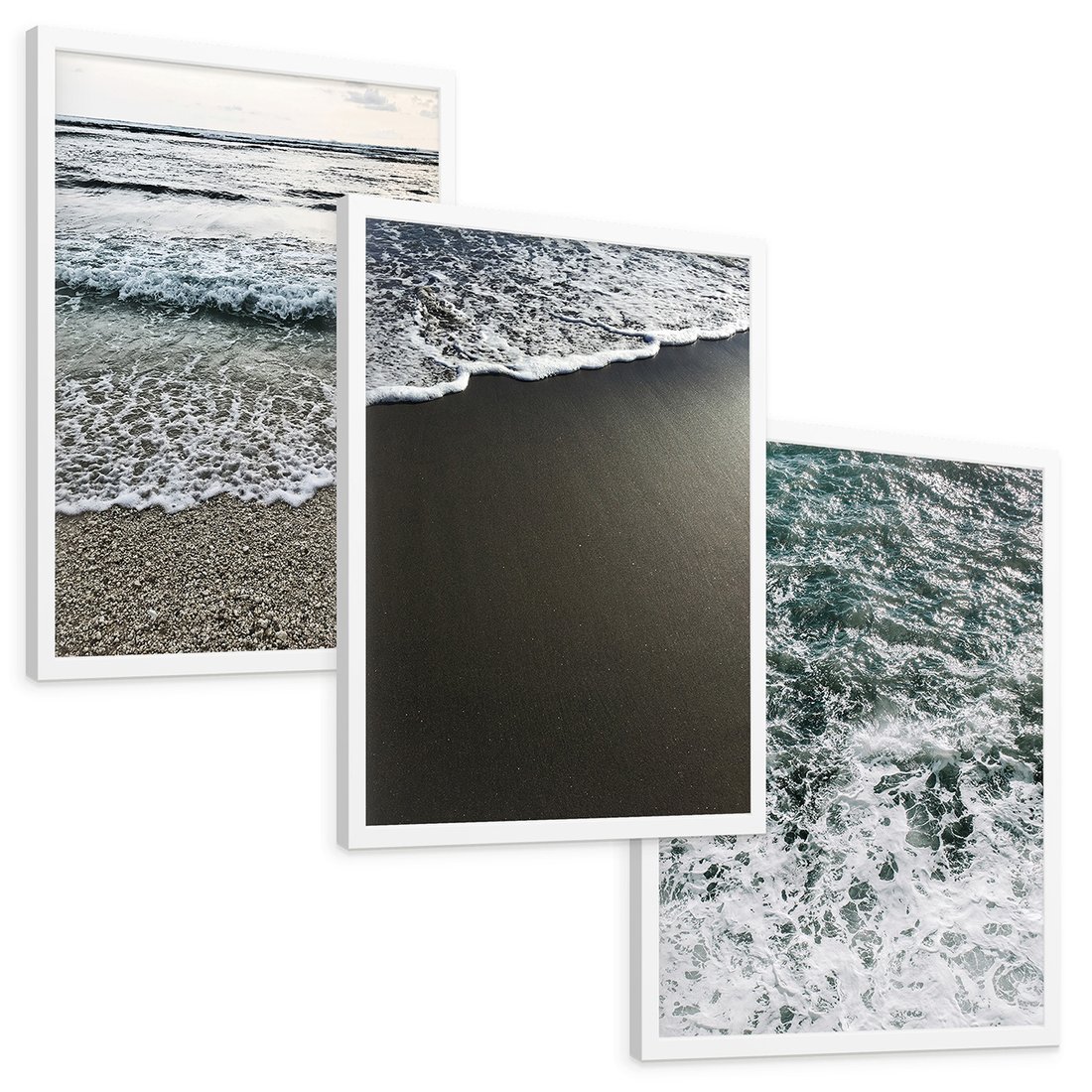 Zestaw obrazy w ramie, plakaty - morze, woda, plaża - rama biała