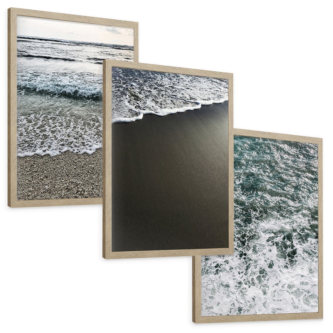 Zestaw obrazy w ramie, plakaty - morze, woda, plaża - rama drewno