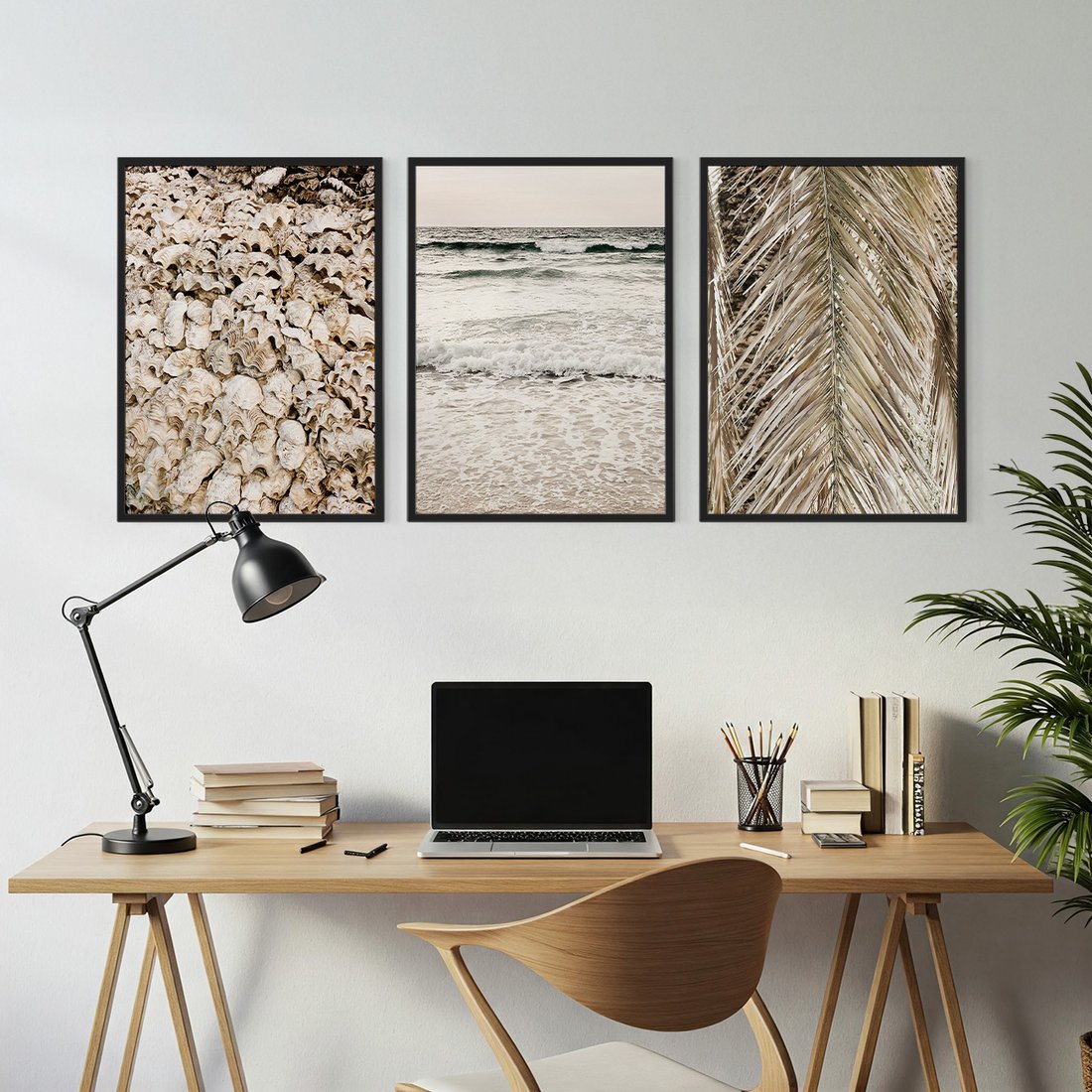 - Zestaw obrazy w ramie, plakaty - muszle, morze, liście