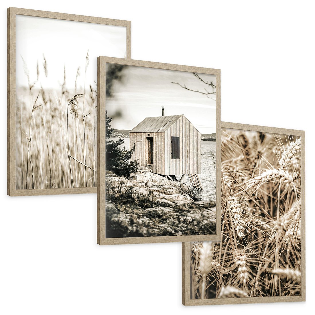 Zestaw obrazy w ramie, plakaty - natura, dom, rośliny - rama drewno