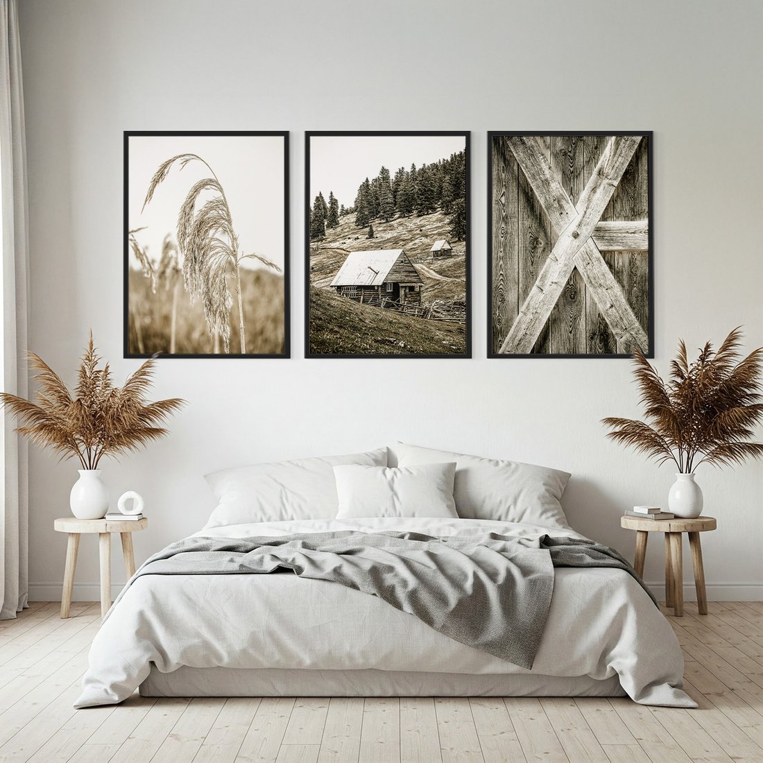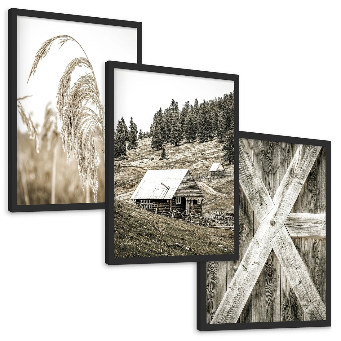 - Zestaw obrazy w ramie, plakaty - natura, drewno, wieś