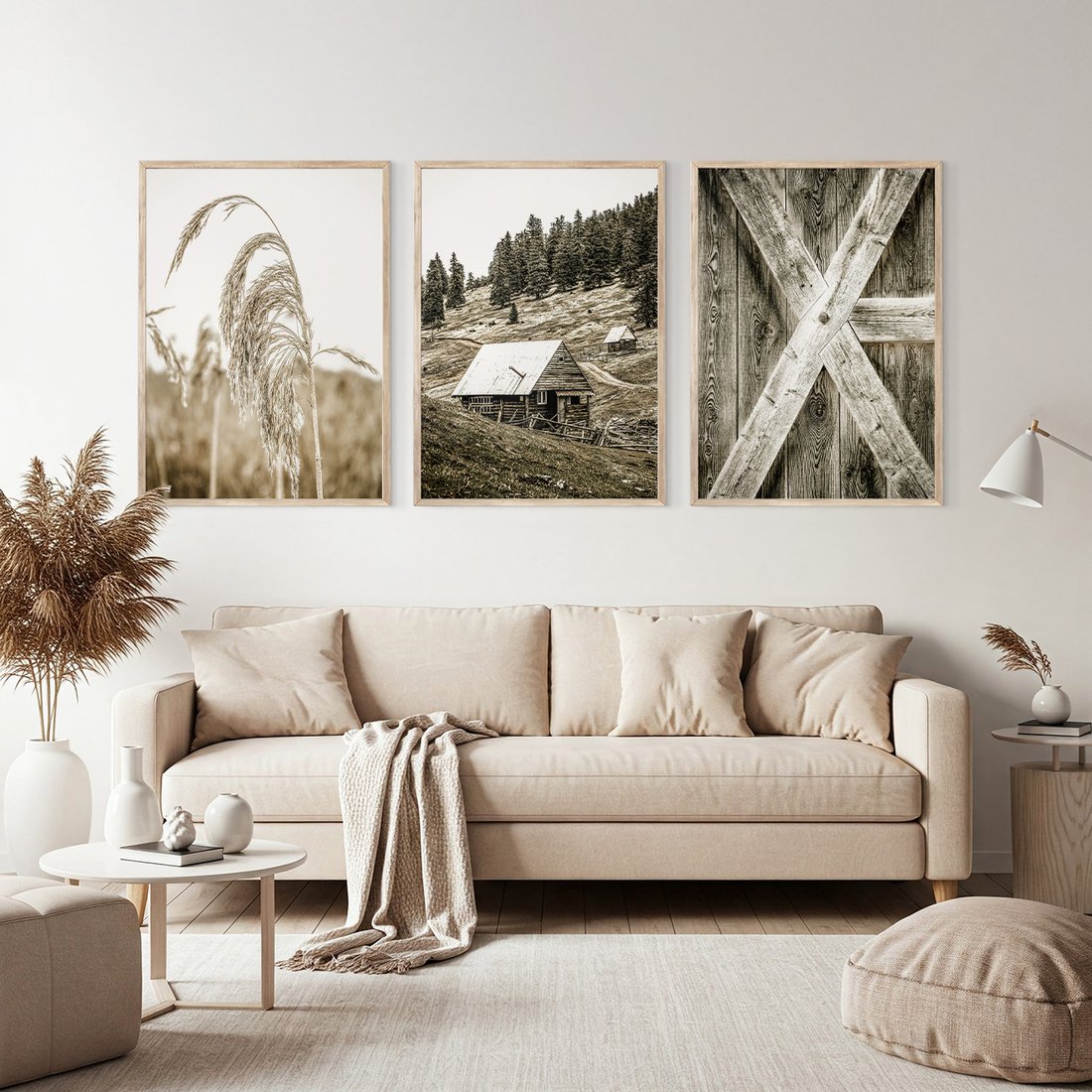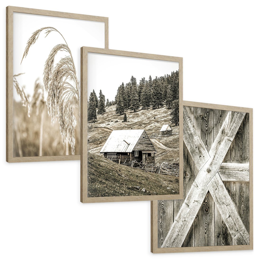 - Zestaw obrazy w ramie, plakaty - natura, drewno, wieś