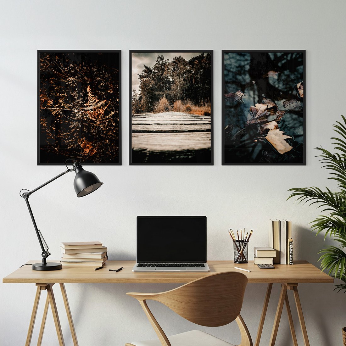 Zestaw obrazy w ramie, plakaty - natura, liście, drzewa - rama czarna