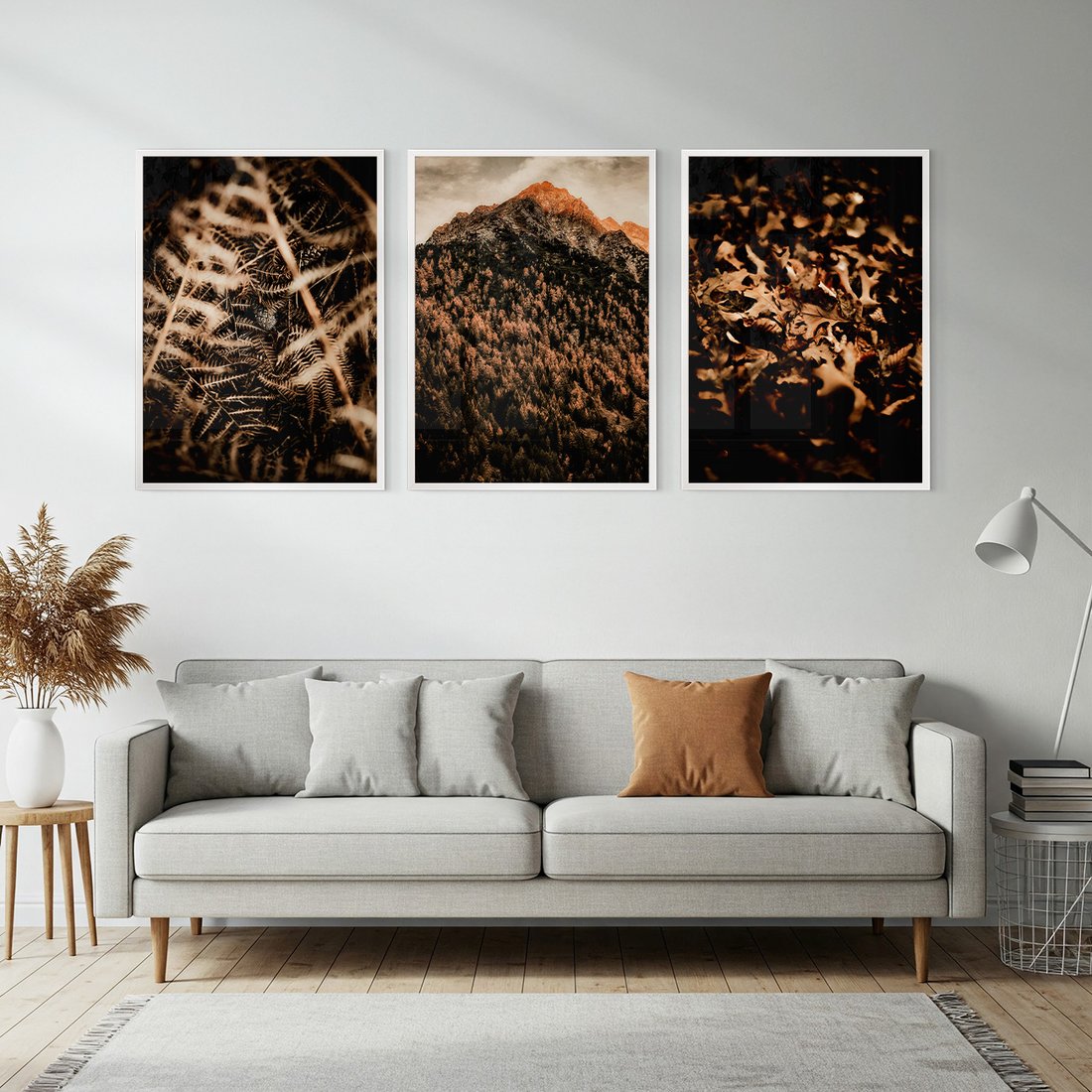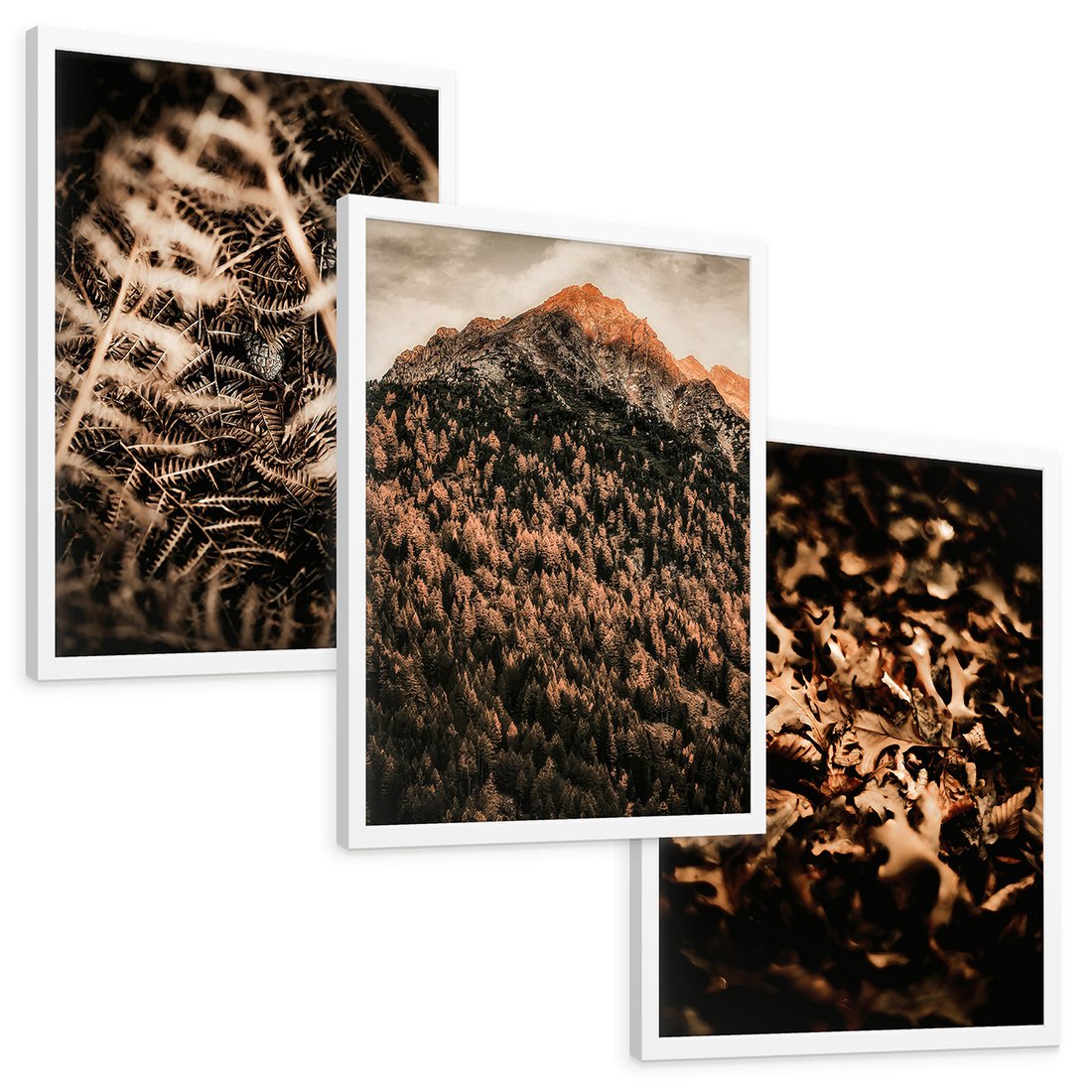 - Zestaw obrazy w ramie, plakaty - natura, liście, góry