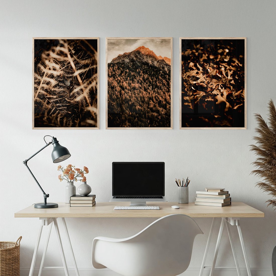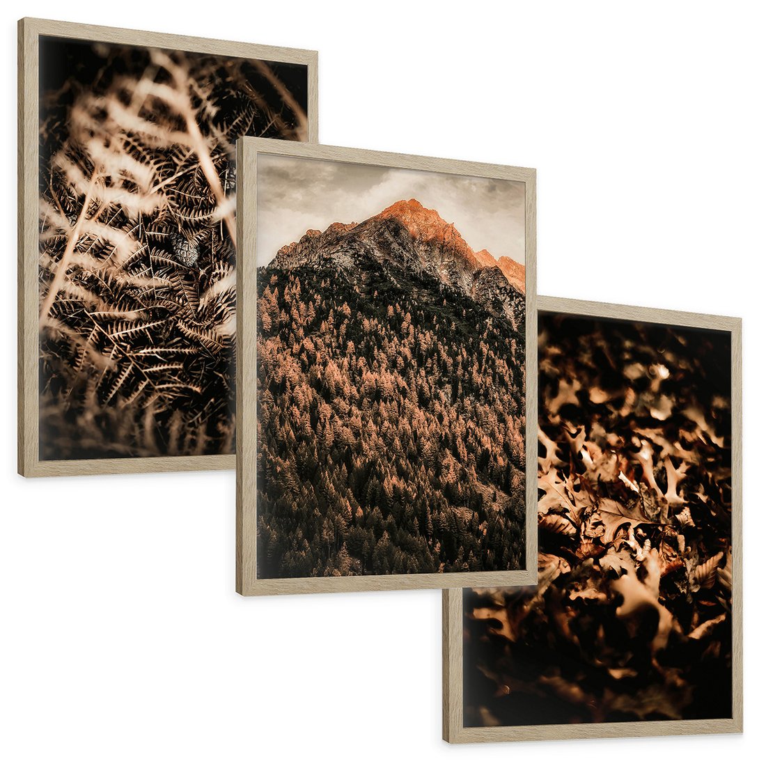 • Zestaw obrazy w ramie, plakaty - natura, liście, góry