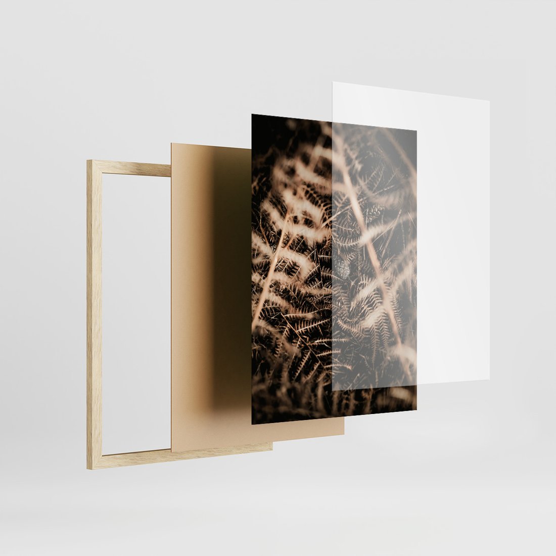 Zestaw obrazy w ramie, plakaty - natura, liście, góry - rama drewno