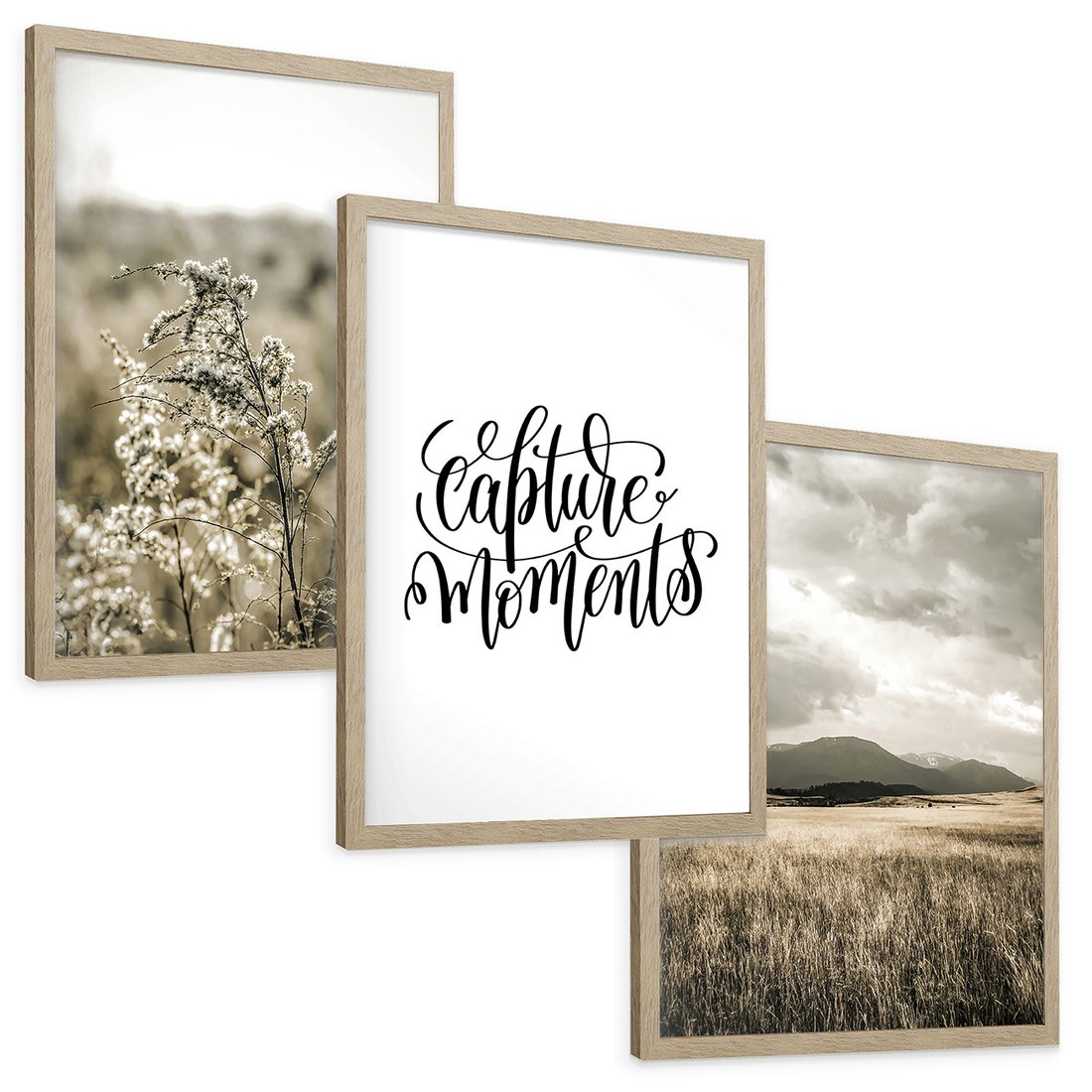 Zestaw obrazy w ramie, plakaty - natura, rośliny, góry - rama drewno
