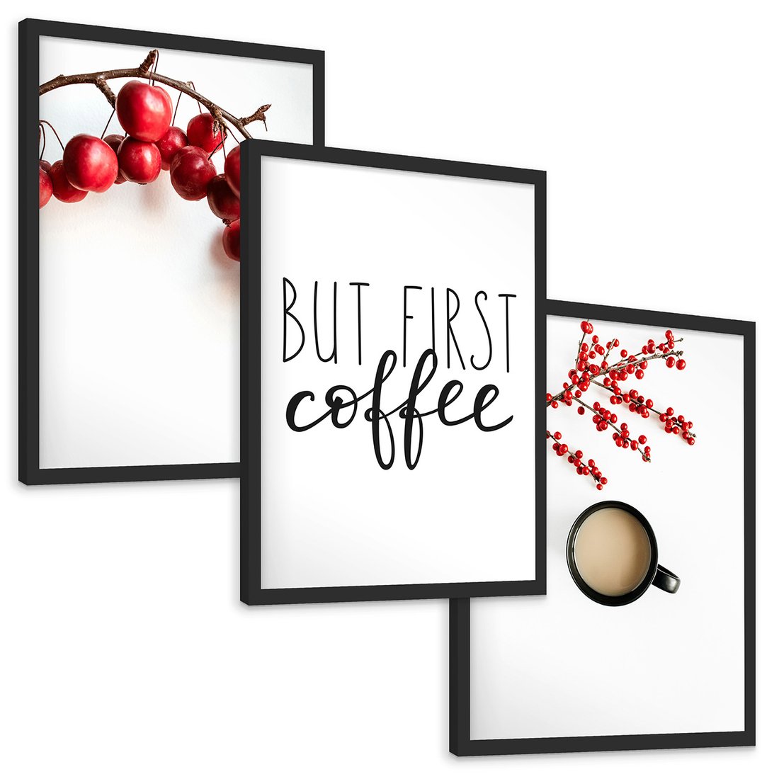 - Zestaw obrazy w ramie, plakaty - owoce, kawa, gałązka