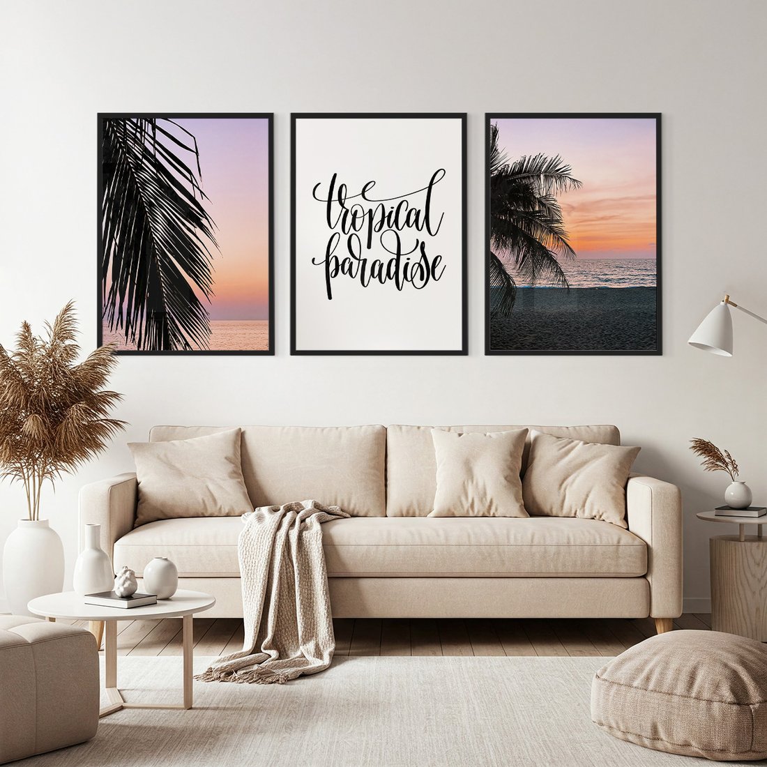 - Zestaw obrazy w ramie, plakaty - palma, tropiki, morze