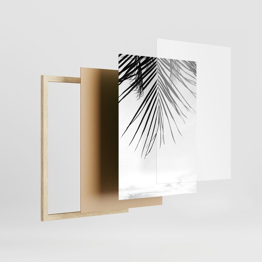 Zestaw obrazy w ramie, plakaty - palmy, liście, tropikalne - rama drewno