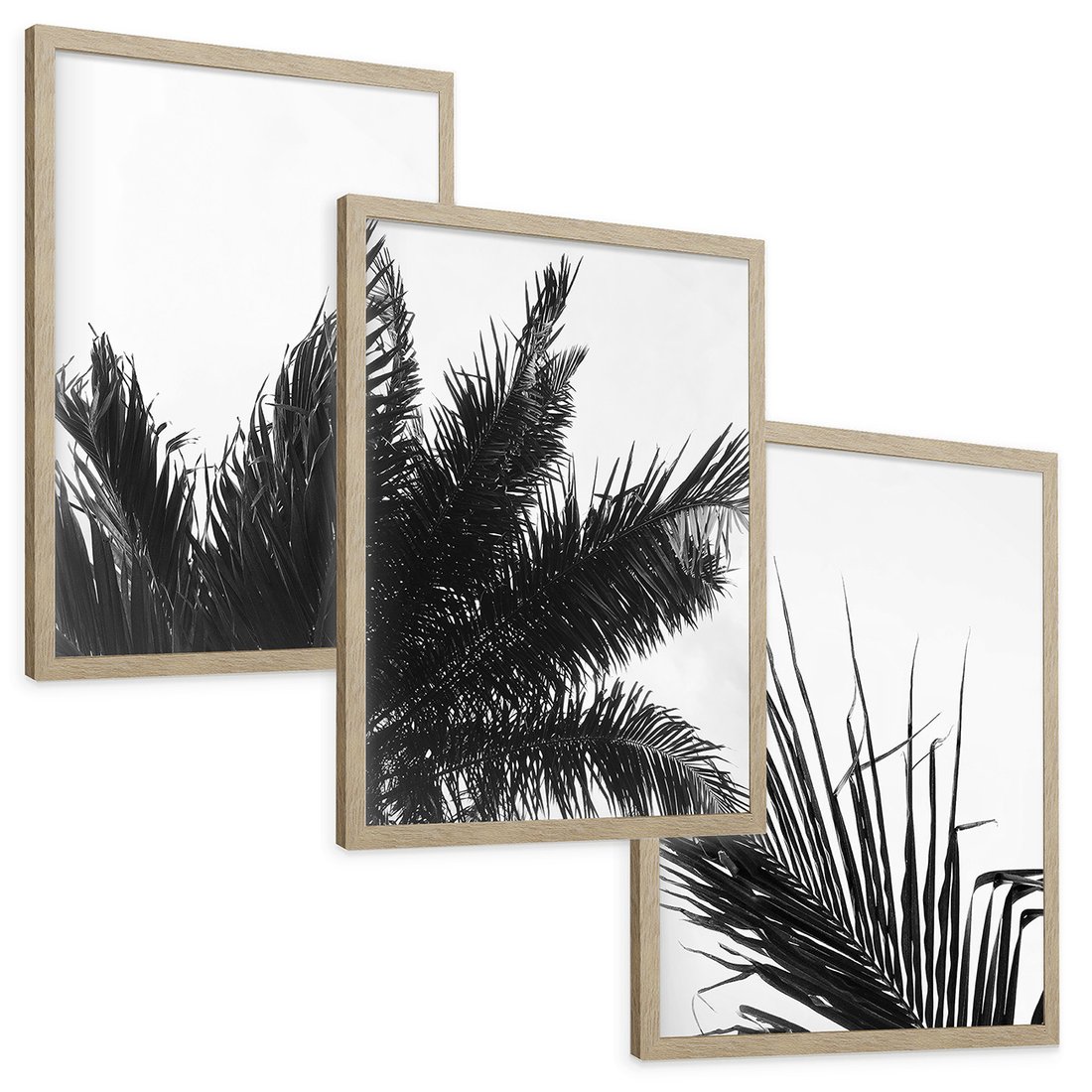 Zestaw obrazy w ramie, plakaty - palmy, liście, tropikalne - rama drewno