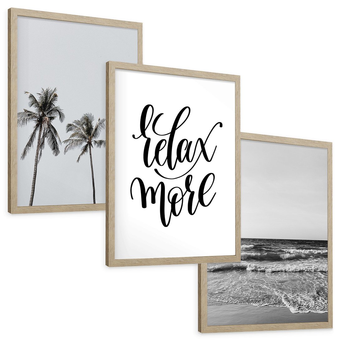 Zestaw obrazy w ramie, plakaty - palmy, morze, relax - rama drewno