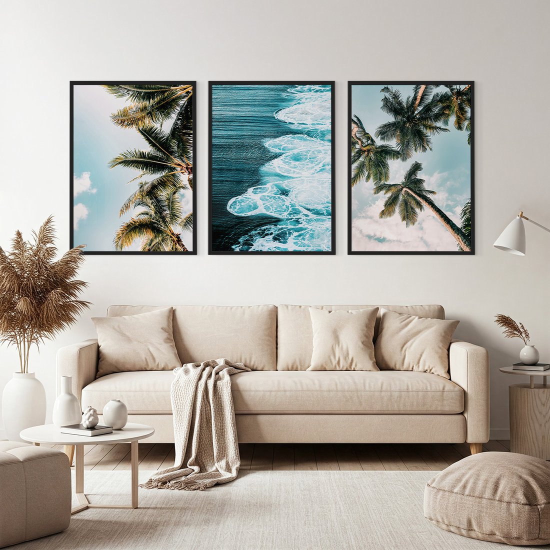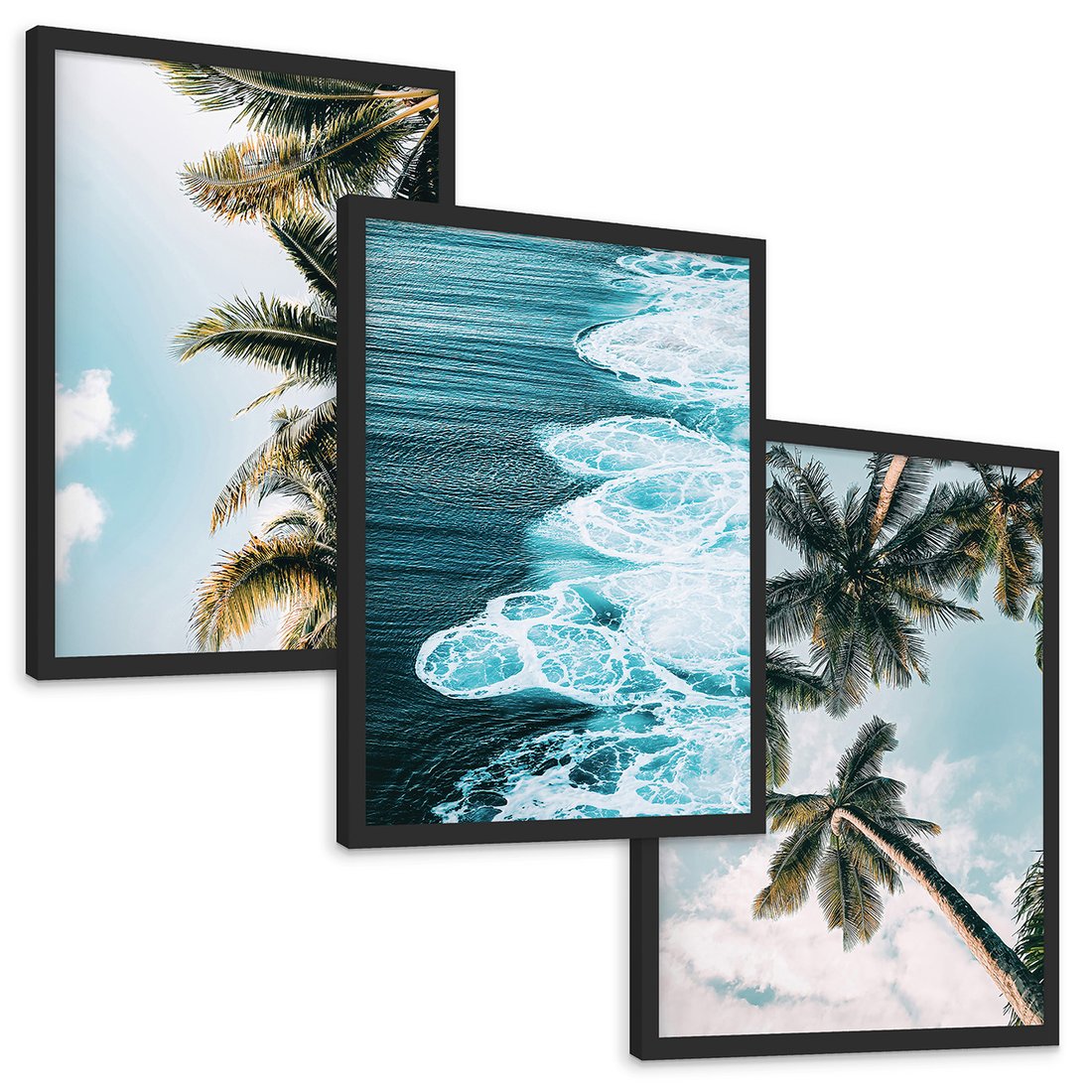 • Zestaw obrazy w ramie, plakaty - palmy, morze, woda
